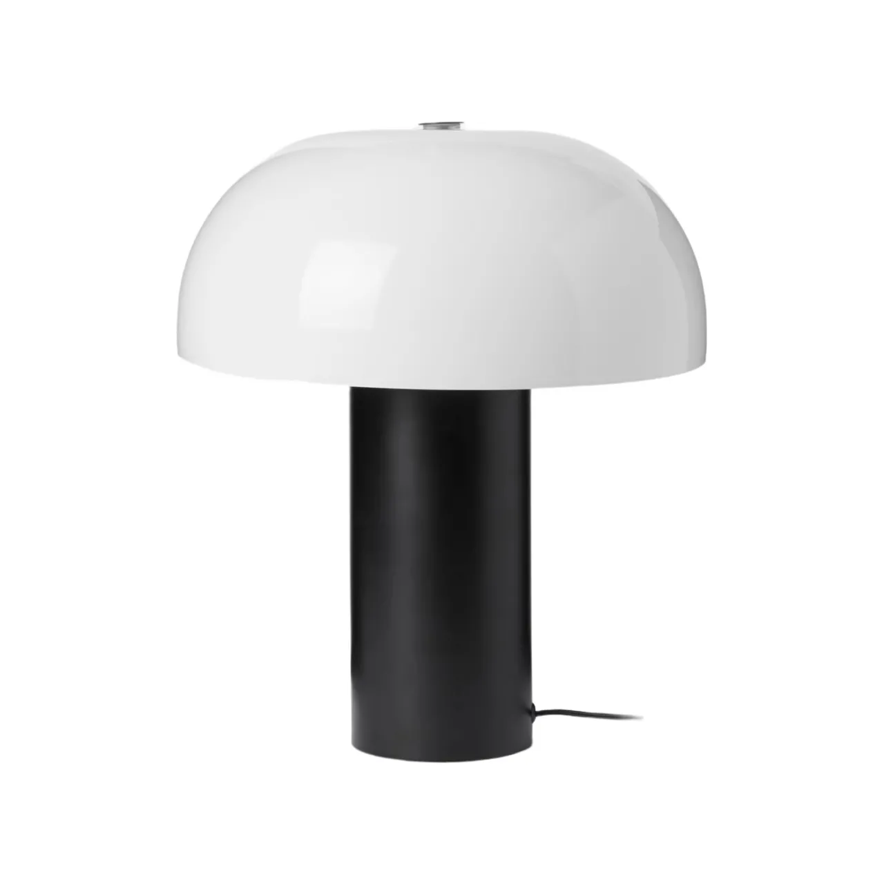 Stilren bordslampa med runda avskalade former, en snygg och funktionell inredningsdetalj på skrivbordet eller i ett fönster.