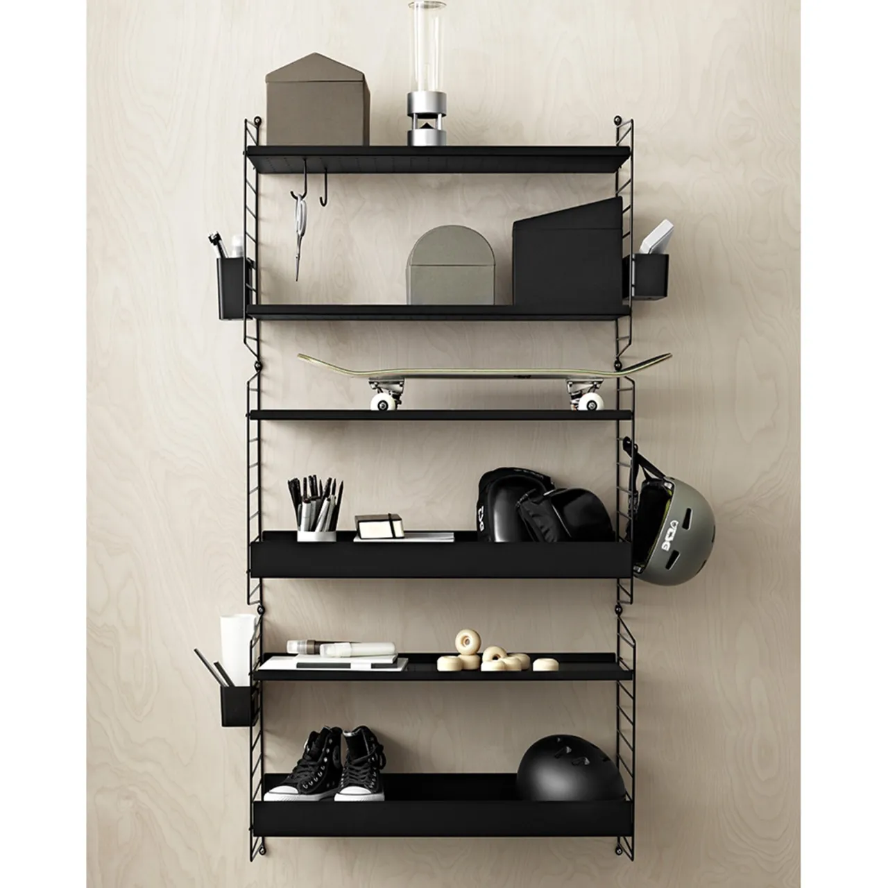 Hyllplanen i lackad MDF finns i två bredder, 58 cm och 78 cm, samt två djup, 20 cm och 30 cm. Hyllplanen passar med tråd- och plexgavlar från String System så länge hyllplanen och gavlarna har samma djup. Hyllplanen är smidiga och enkla att flytta runt efter tycke och smak. Skapa en hylla i ett monokromt utförande eller blanda hyllplan i olika färger och träslag. Varje förpackning innehåller tre hyllplan samt hyllbärare.