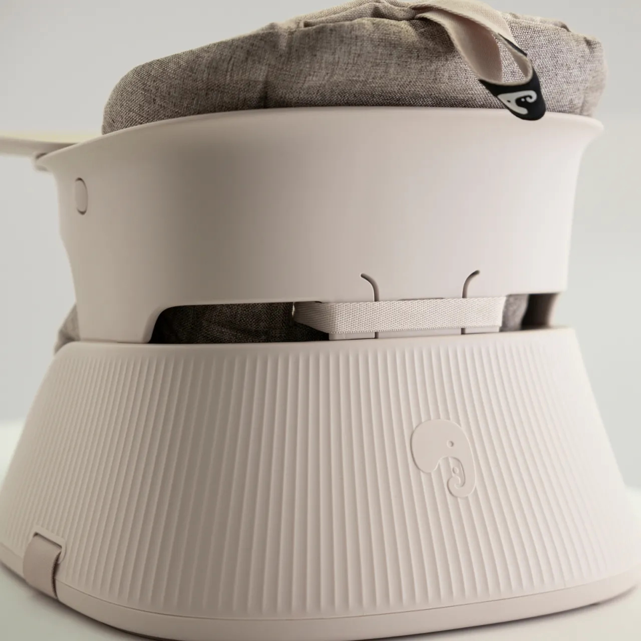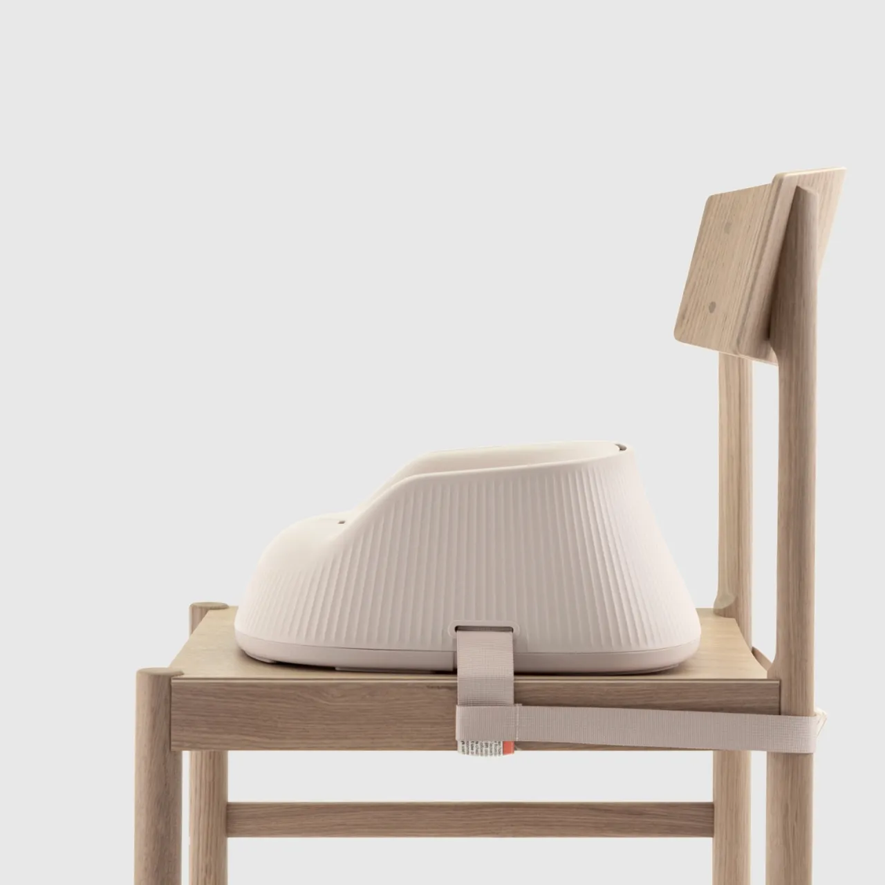 Det var just utifrån den insikten vi designade The Portable High Chair. Vi ville skapa en produkt som inte bara löser ett behov i stunden, utan som följer med genom vardagen – från frukost hemma till spontan middag hos mormor eller på restaurang. En stol som är säker, lätt att ta med sig och enkel att använda, oavsett vem som sätter fast den – den ska vara ””grandma-proof””. Den ska dessutom passa in i ditt hem, en produkt som smälter in och som man vill ha framme.