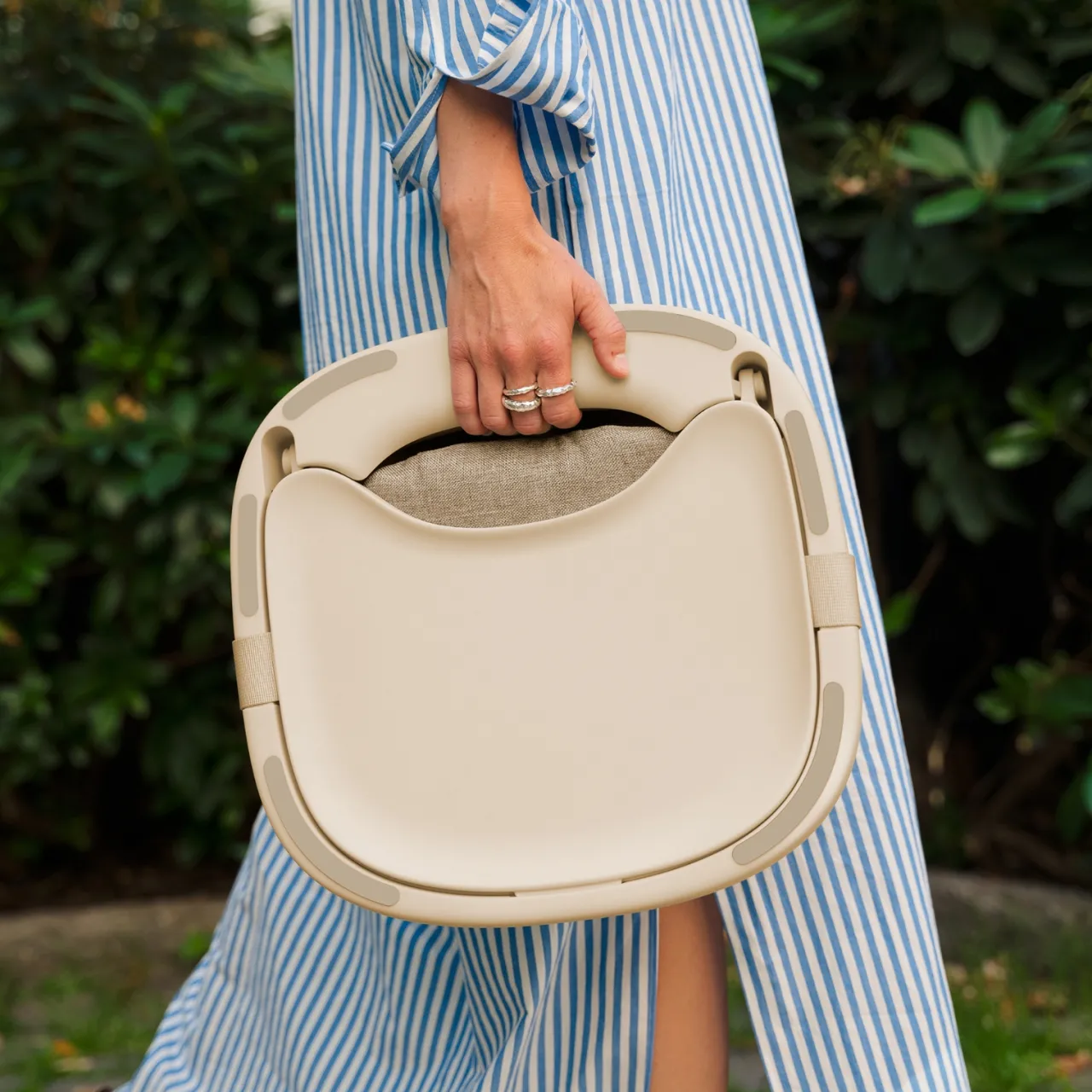 The Portable High Chair är den perfekta lösningen för familjer on the go och en av vinnarna i från Jurydagen 2025! Den här barnstolen är designad för ditt barn från 6 månader upp till 5 år och kan enkelt omvandlas från en babystol till en förhöjningssits. Med sin smidiga design fästs den enkelt på din matstol, oavsett om ni är hemma, på restaurang eller på resa. Ditt barn sitter på samma nivå som i en traditionell barnstol, vilket gör att de alltid kan vara med vid bordet och delta i samtalet. Bekväm, säker och lätt att ta med – det här är den enda babystolen du behöver! Max viktkapacitet: 25 kg