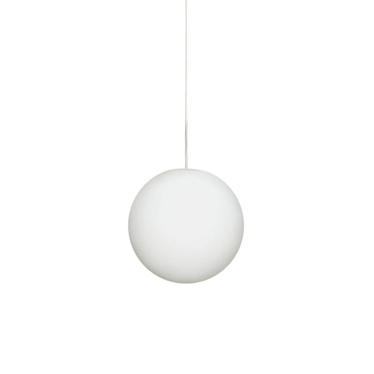 Material: Munblåst opalglas, PVC-sladd, stålkabel