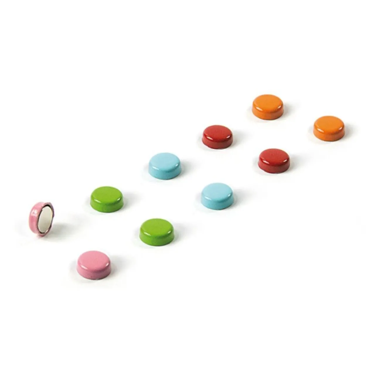 Tio starka minimagneter i en blandning av färger. Två av varje: orange, röd, ljusgrön, ljusblå och rosa. Magneterna är extra starka och perfekta för organisation i hemmet! Magneterna är bör hållas utom räckhåll för barn.
