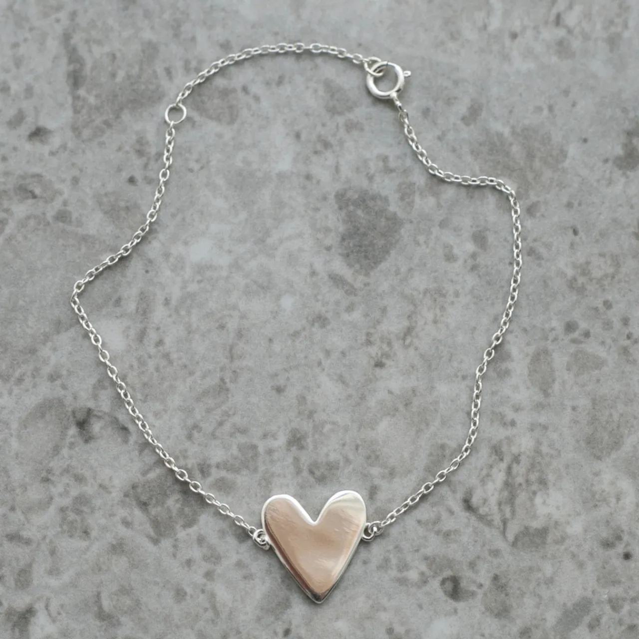 Armband Freja med hjärtberlock i silver. Freja är ett armband att bära varje dag med en enkel, stilren berlock i form av ett hjärta som påminner om kärlek, styrka och närvaro. Den mjuka formen och den tidlösa designen gör det lika fint till vardag som till fest och passar de flesta stilar.