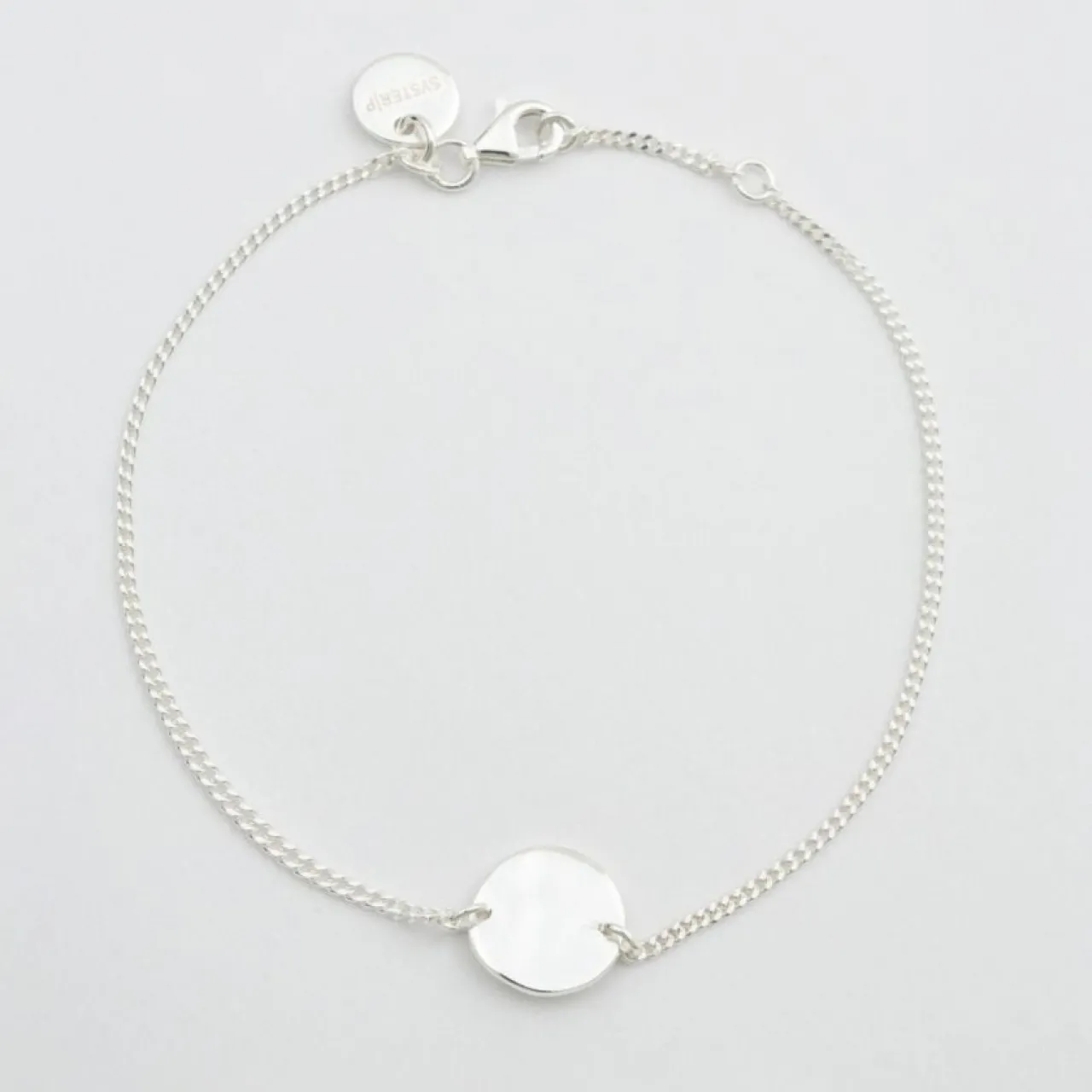 Armband från Syster P med ett hänge som har en hamrad yta med en vacker handgjord känsla. Armbandet är gjort av 100% återvunnet silver, pläterat med 18K guld. Finns även i silver och matchande örhängen.