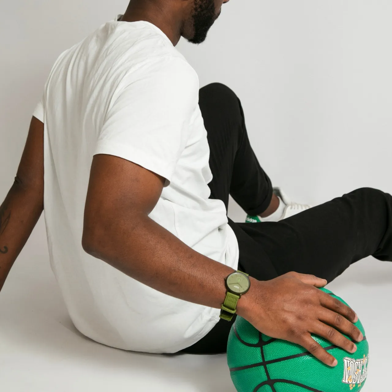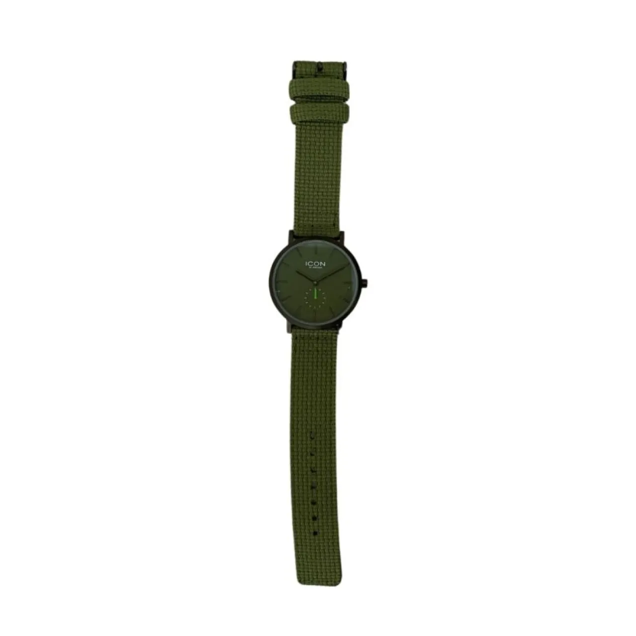 En nätt och lättburen klocka som passar lika bra till killar och tjejer. Tunt boett och ett Miyota Citizen urverk. Enkla detaljer där allt förutom den gröna sekundvisare är bortskalade.