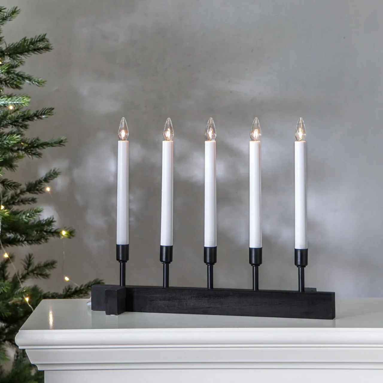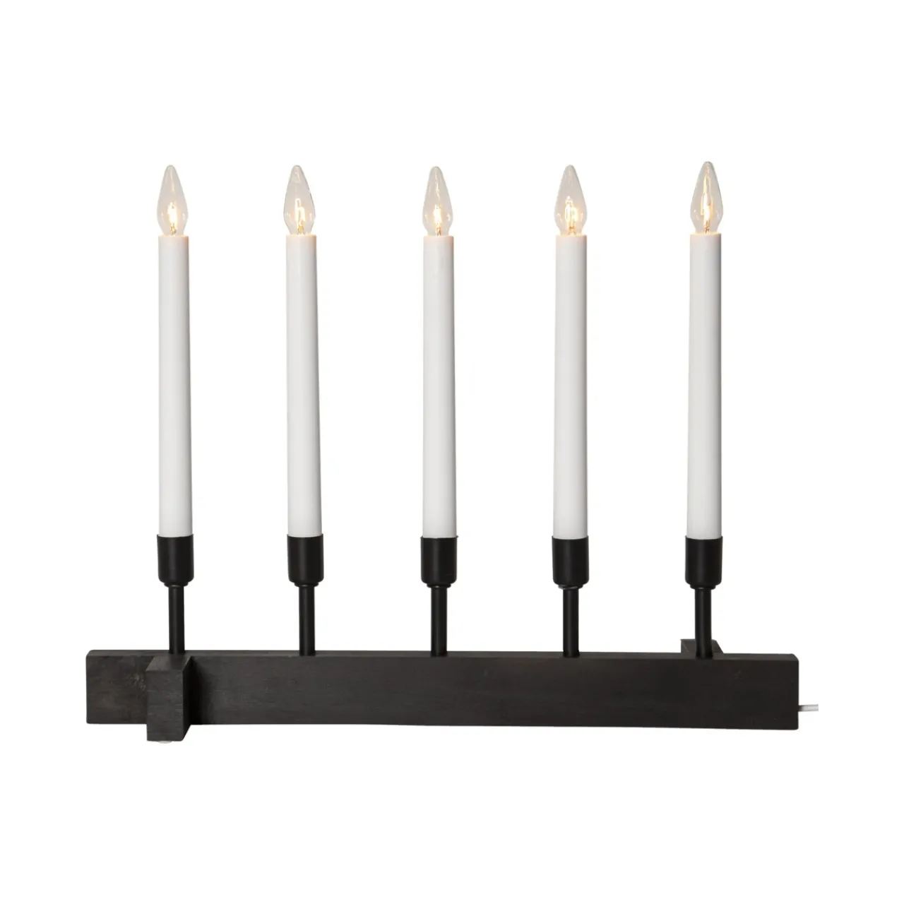 En väldigt fin och stämningsfull adventsljusstake. Svart betsad träbas i rak modell med upphöjda ljuskoppar, ger ett elegant och enkel uttryck till både hemmet och den offentliga miljön. Sprider ett behagligt ljus med sin 7 ljuskällor. Placera i ett fönster eller på en skänk för att få en härlig julkänsla.