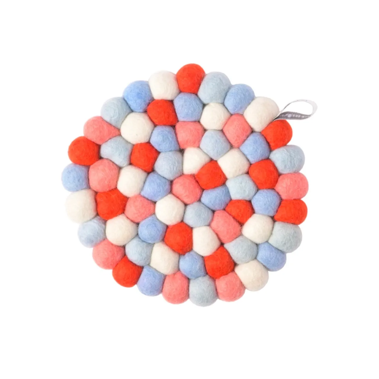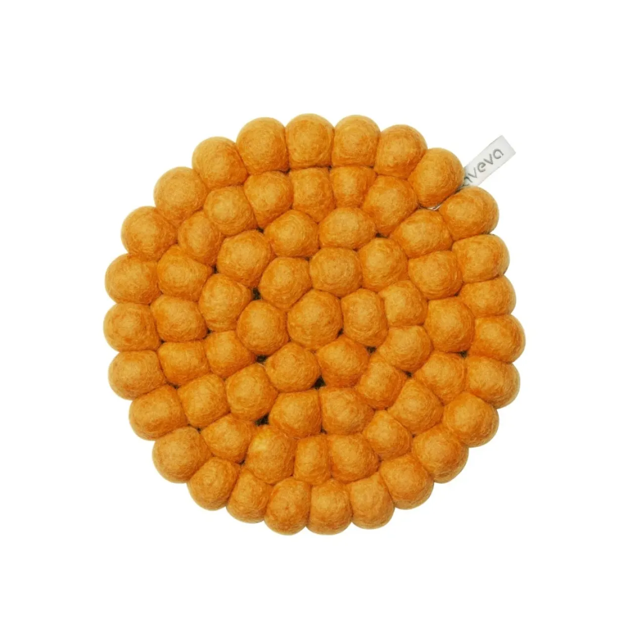 Handtillverkat grytunderlägg av 100% ull som ger en mjuk och robust känsla. Ullen som används är ekologisk och färgerna giftfria.Avevas grytunderlägg är perfekta att placera sina grytor på då ull som material är både smuts- och värmeavvisande. Grytunderläggen både skyddar, dekorerar och färgsätter bordet och är designade och utformade för en lång hållbarhet.