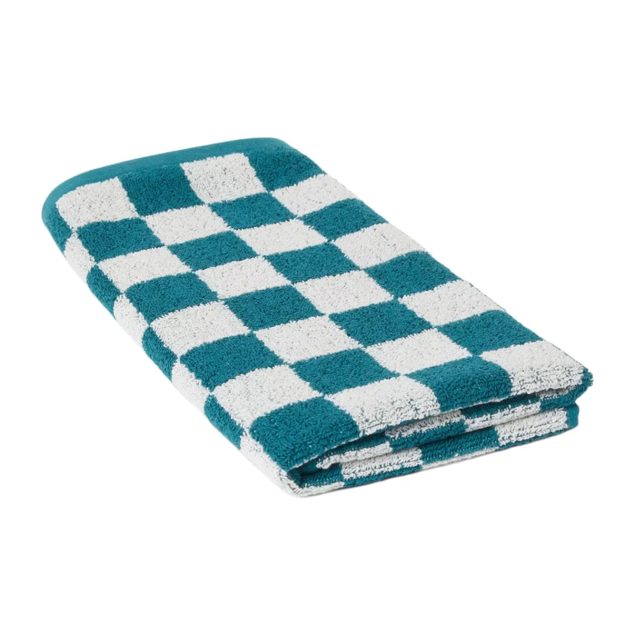 Mjuk schackrutig handduk i 100% bomull.