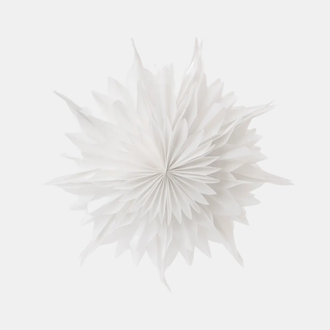Enfärgad adventsstjärna, tillverkad i skirt, semitransparent papper och formad som en fyllig snöflinga.