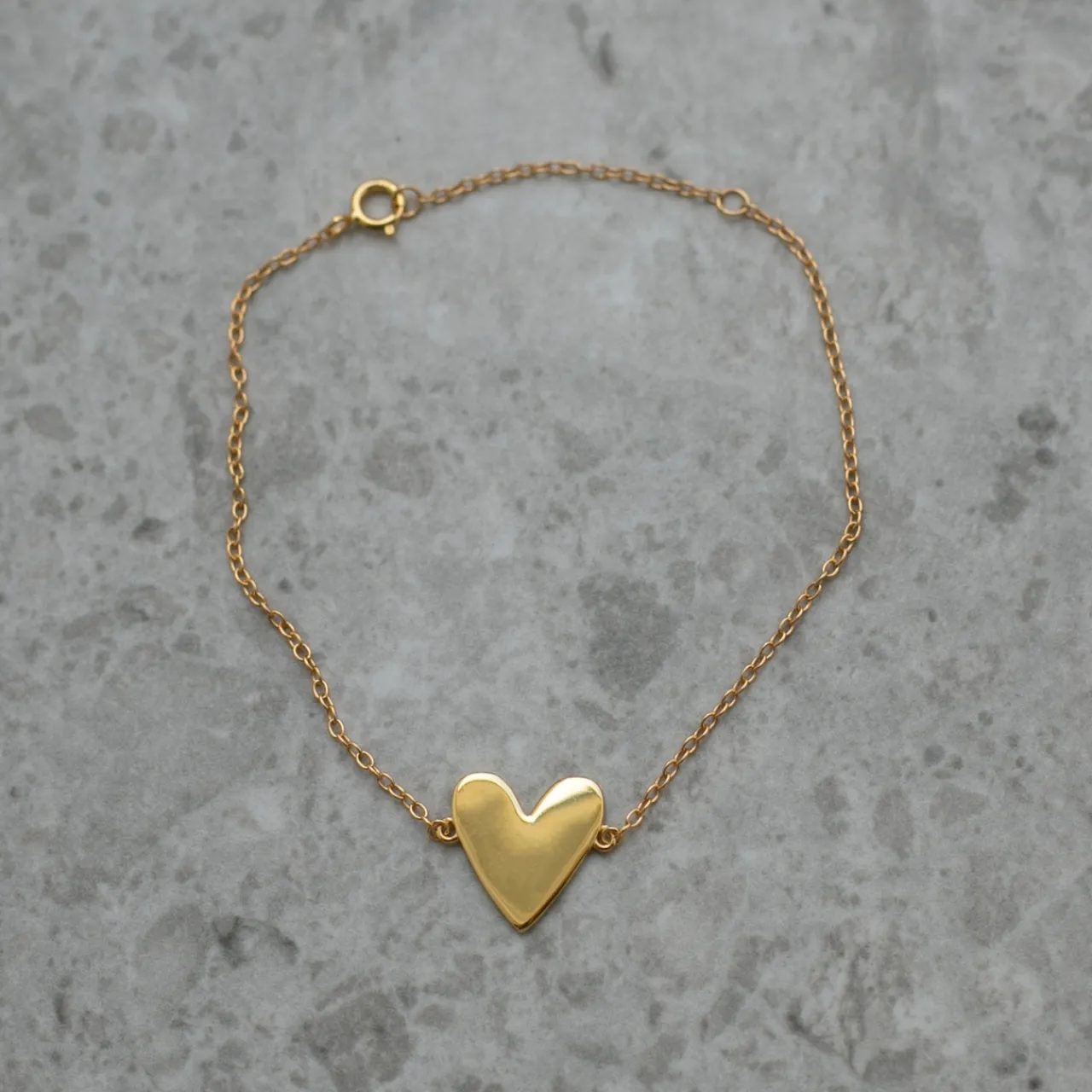 Armband Freja med hjärtberlock i guldpläterat silver. Freja är ett armband att bära varje dag med en enkel, stilren berlock i form av ett hjärta som påminner om kärlek, styrka och närvaro. Den mjuka formen och den tidlösa designen gör det lika fint till vardag som till fest och passar de flesta stilar.
