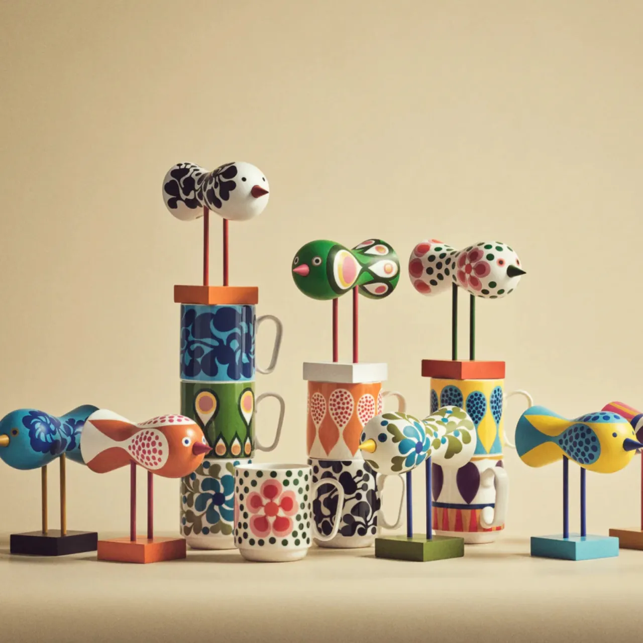 Hennes färgglada flock av fåglar föddes redan under det levande och livfulla 60-talet, en era när livlig musik exploderade och den unga Flower Power-generationen erövrade scenen. Lisa Larsons fåglar flyger nu fritt. Lisa Larsons fåglar är nästan som fredsduvor, en påminnelse om en tid när den unga generationen protesterade mot krig och drömde om ett nytt samhälle.