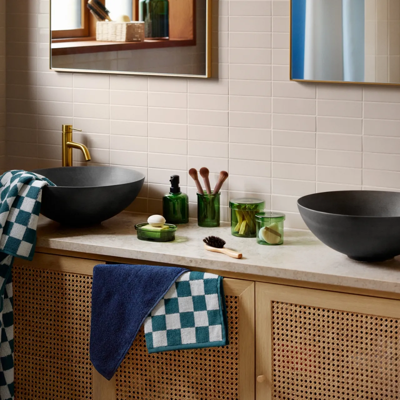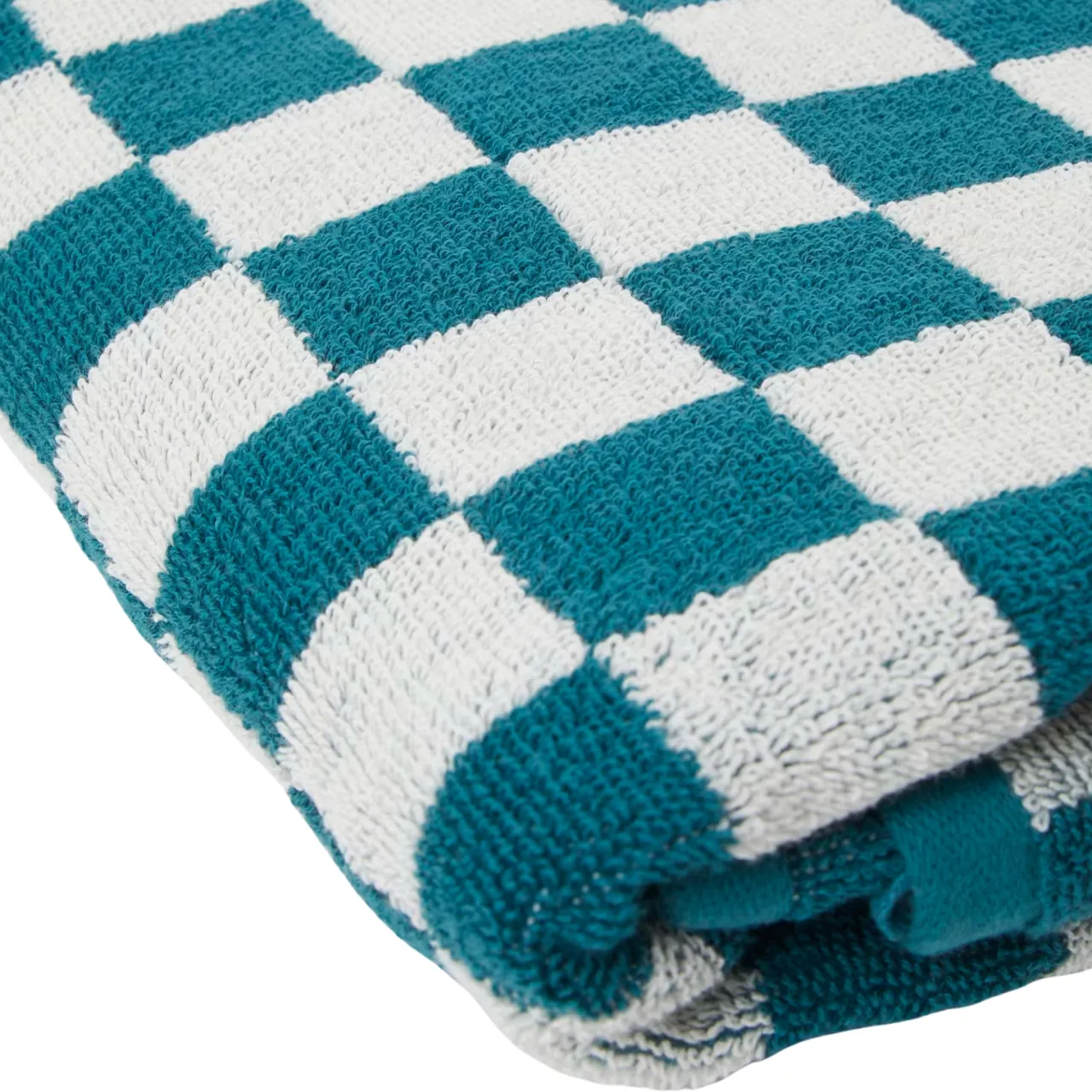 Mjuk schackrutig handduk i 100% bomull.