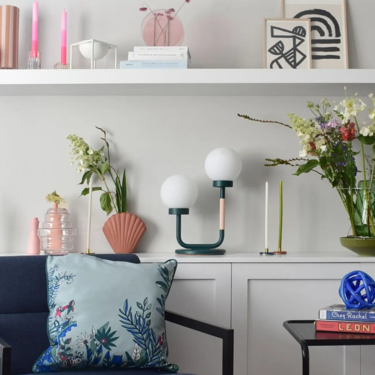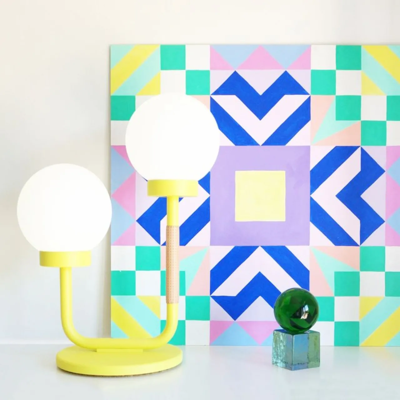 Lekfull bordslampa formgiven av Maria Gustavsson för malmöbaserade Swedish Ninja. Designen är inspirerad av längdskillnaden mellan Maria och hennes man! Lampan är tillverkad av pulverlackad metall, läder, opalglas och undersida av kork. E14-sockel.