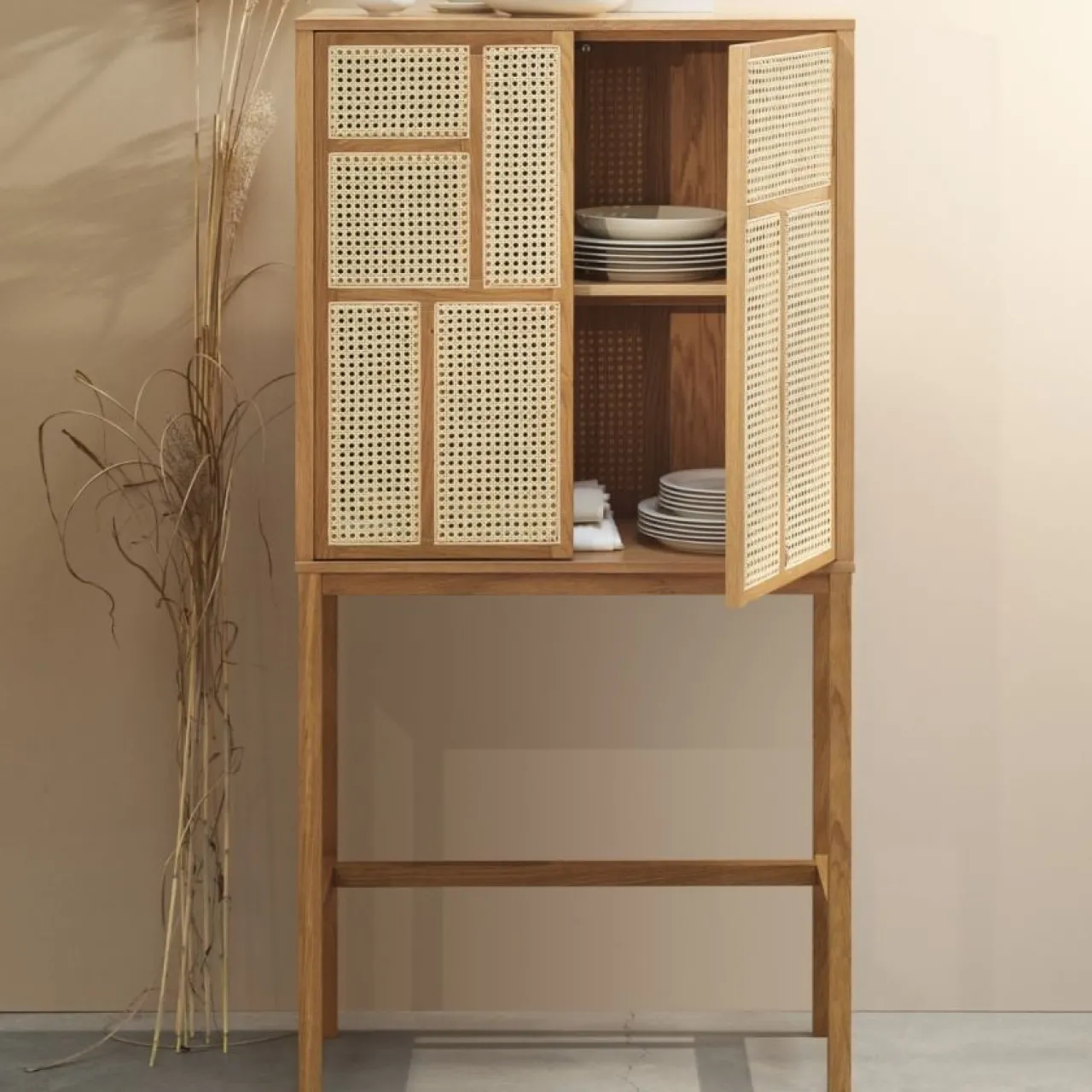 Air Cabinet är ett av de senaste tillskotten i Air-serien, designad av Mathieu Gustafsson för Design House Stockholm. Den kombinerar ett grafiskt, räfflat mönster med naturliga sockerrör som ger en känsla av ljushet och transparens. -Vikt: 30 kg.