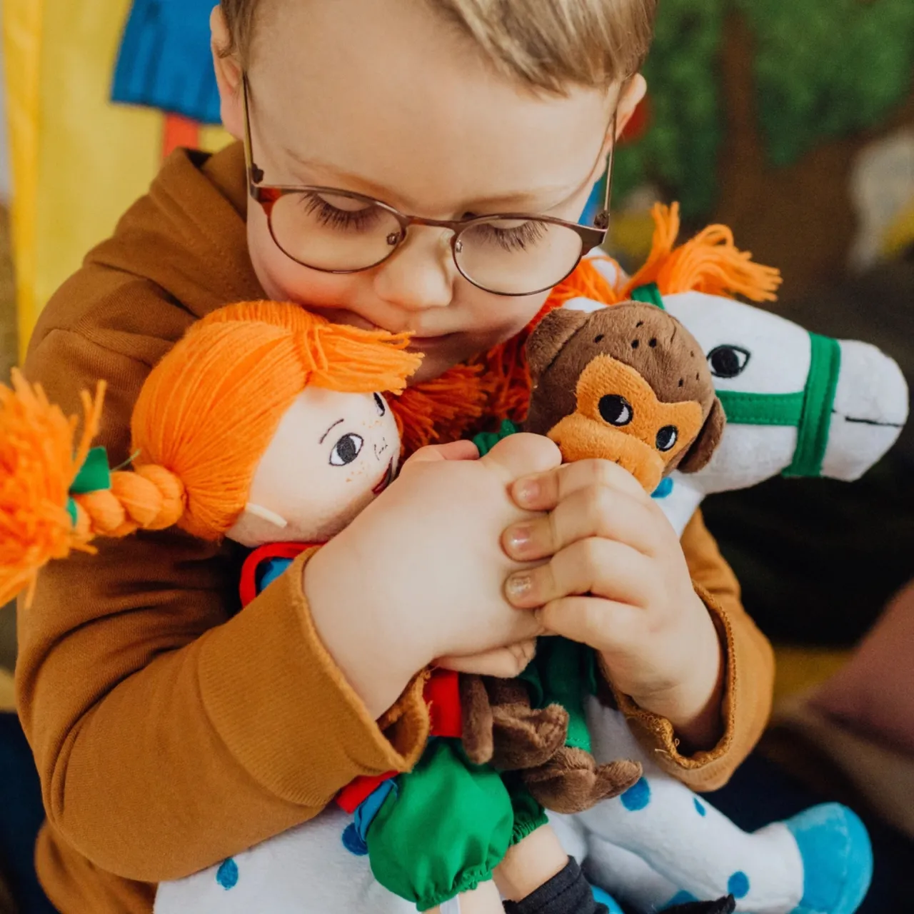Lek med världens starkaste flicka! Det är inte konstigt att Pippi är många barns favorit. Astrid Lindgrens berättelser om Pippi Långstrump fortsätter att underhålla barn och Ingrid Vang Nymans klassiska illustrationer ger leksakerna lekfullt liv.