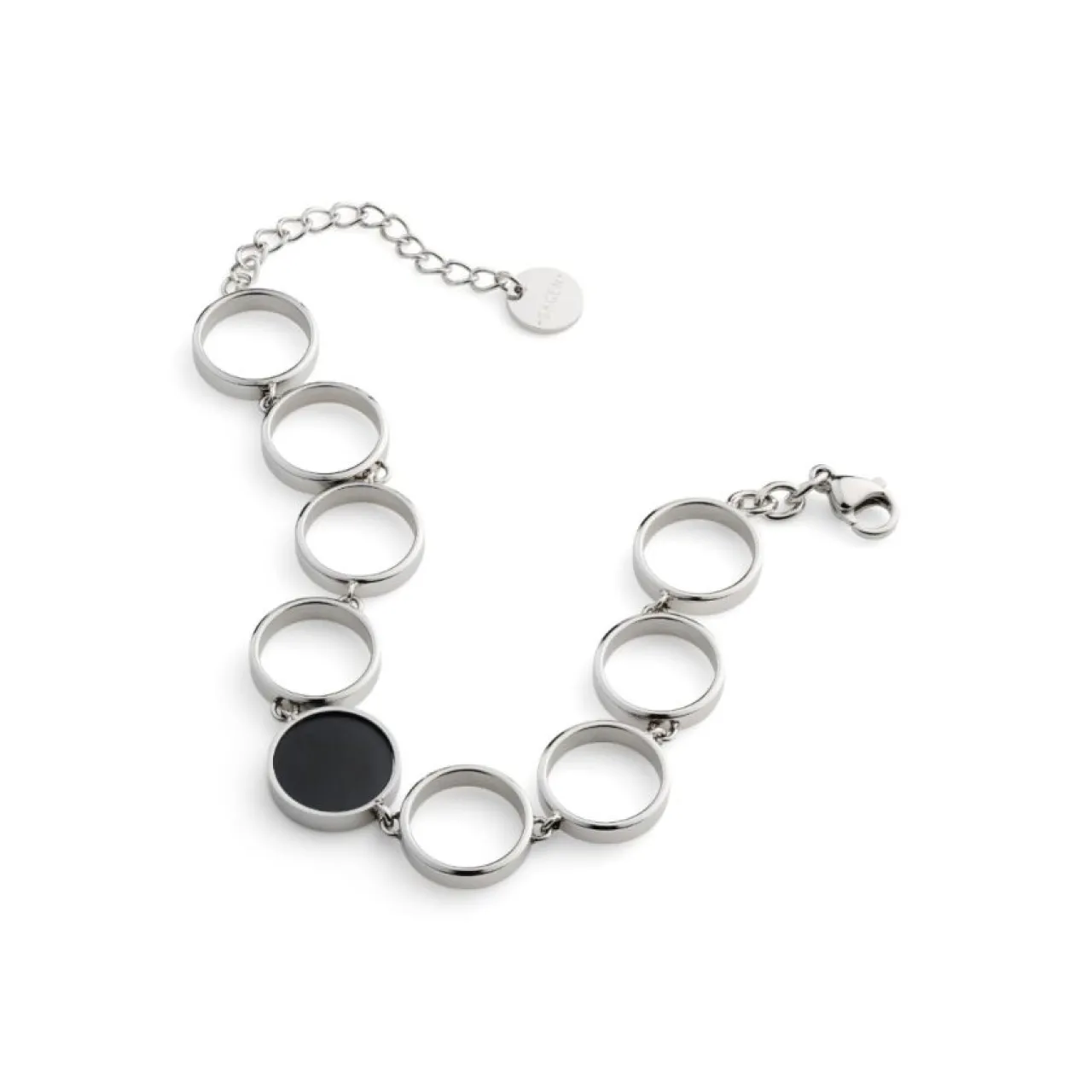 Modernt armband med mörk karaktär. Bärbar Skandinavisk smyckesdesign. Det här smycket passar till allt! LUNA betyder måne på Latin. Kollektionen är inspirerad av månens mystik och 60-talets experimentella design. Embrace the darkness. Let Lunar power be you!