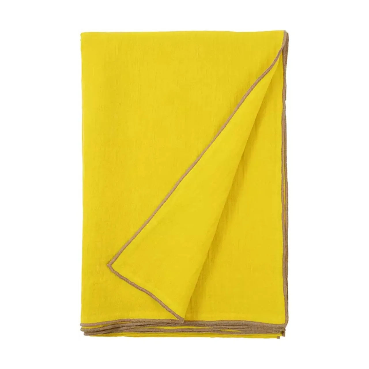 Exklusiv vävd filt av 60% Europeiskt linne och 40% återvunnen bomull. Filten har en dekorativ söm runtom i avvikande färg. Evy passar lika bra som en lätt filt i soffan som på uteplatsen. Tillverkad i Portugal. Storlek: 260×260 cm Tvättråd: Tvätta i fintvätt 40° och tumla lätt. Kan krympa 3-5% vid tvätt.