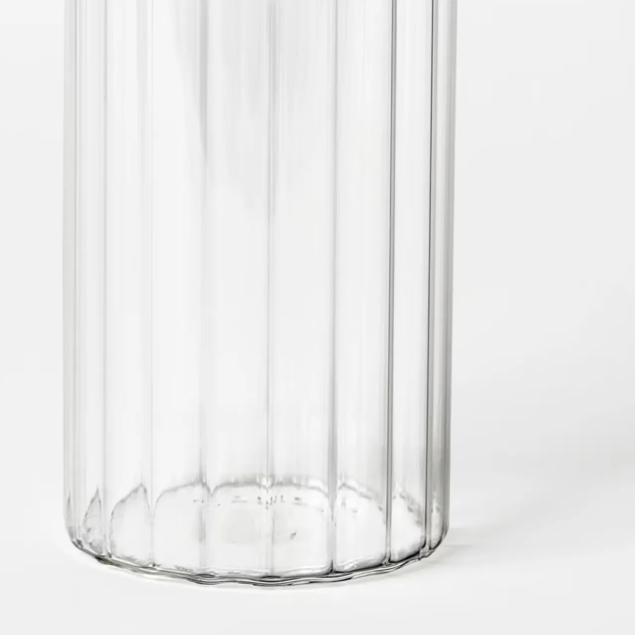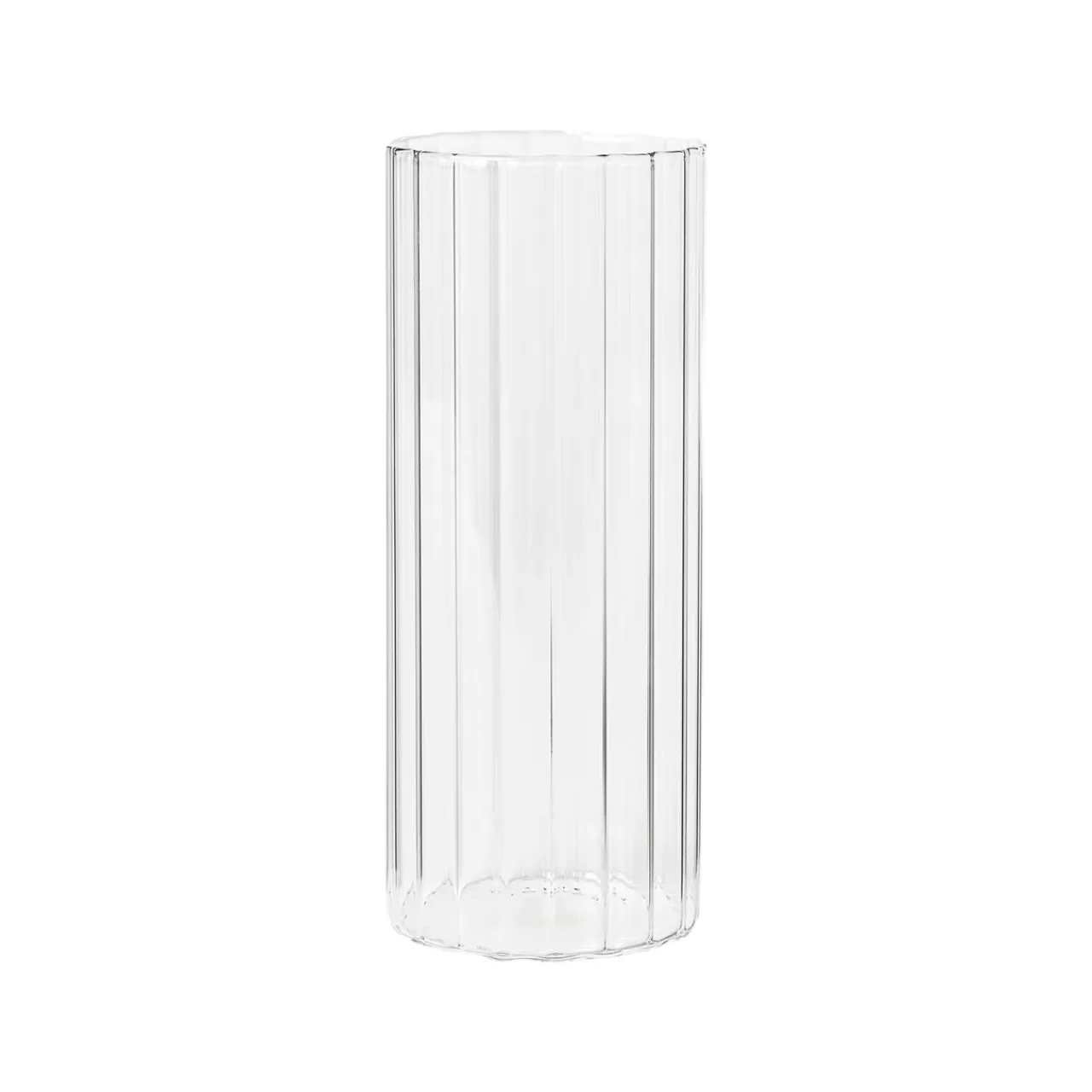 Smalt drinkglas i borosilikatglas. Glaset har en rillad yta.