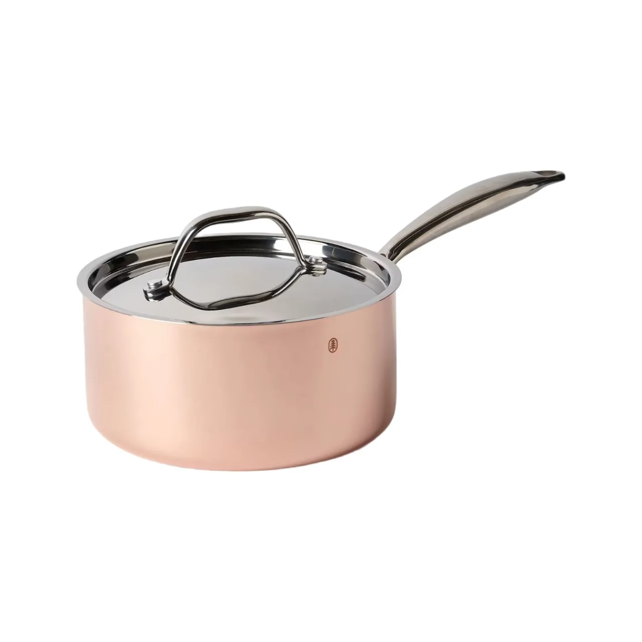 Kastrull med lock ur Granbergs eleganta kopparserie PRIMO, perfekt för tillagning av såser och soppor.