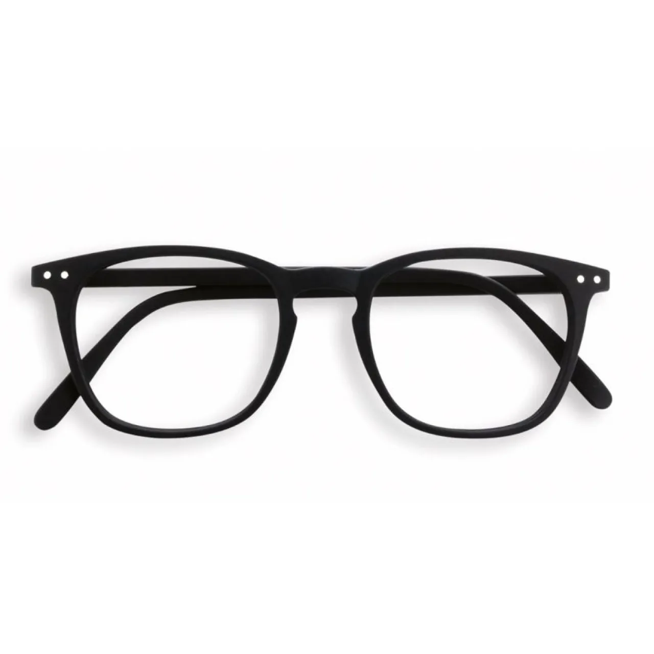 Läsglasögon #E i Black Soft från IZIPIZI är ett par läsglasögon med trapetsform, tidlös och stilsäker design. Bågarna är unisex med hög kvalité, lätta & bekväma läsglasögon som passar till både fest och till vardags.Bågarna #E finns i tre färger; Black Soft, Tortoise Soft och Kaki. Läsglasögon från IZIPIZI uppfyller de europeiska standarderna för glasögons om inte är receptbelagda. Styrkorna på glasen finns i fem styrkor; +1, +1,5, +2, +2,5 & +3