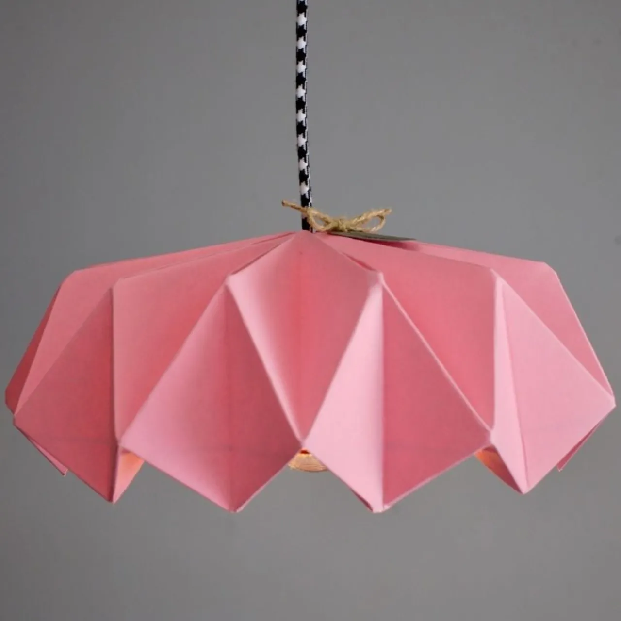 Lampan är med precision vikt ur ett enda stycke kraftig, genomfärgad, kartong. Papprets många veck skapar ett vackert skuggspel både i lampan själv och på väggarna i rummet. Skärmen har en tråd i nederkant som gör lampskärmen stabil och robust.