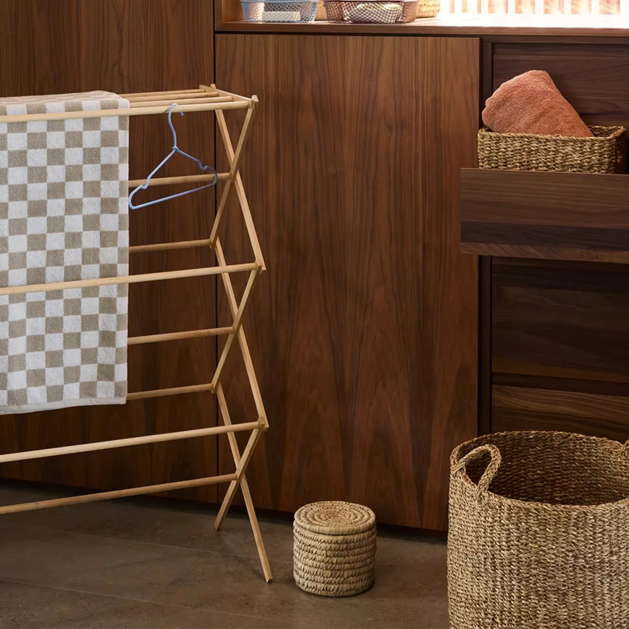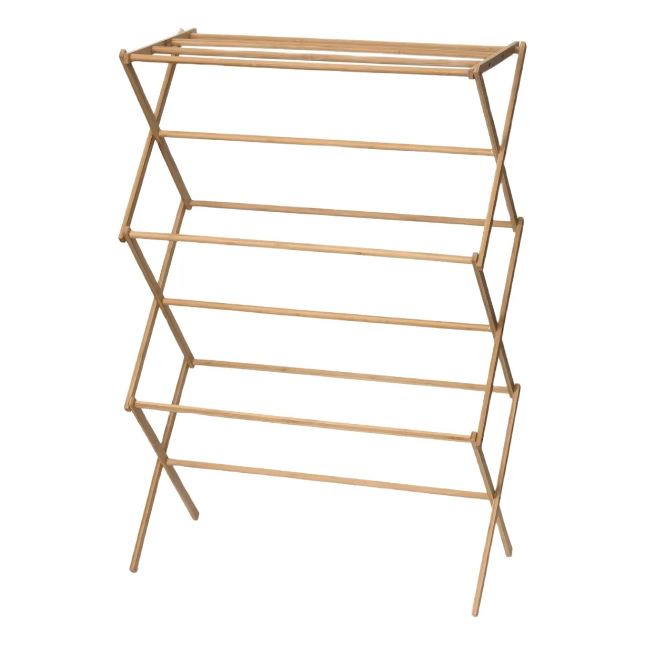 Snygg och praktisk torkställning i bambu med gott om plats för hängande tvätt.