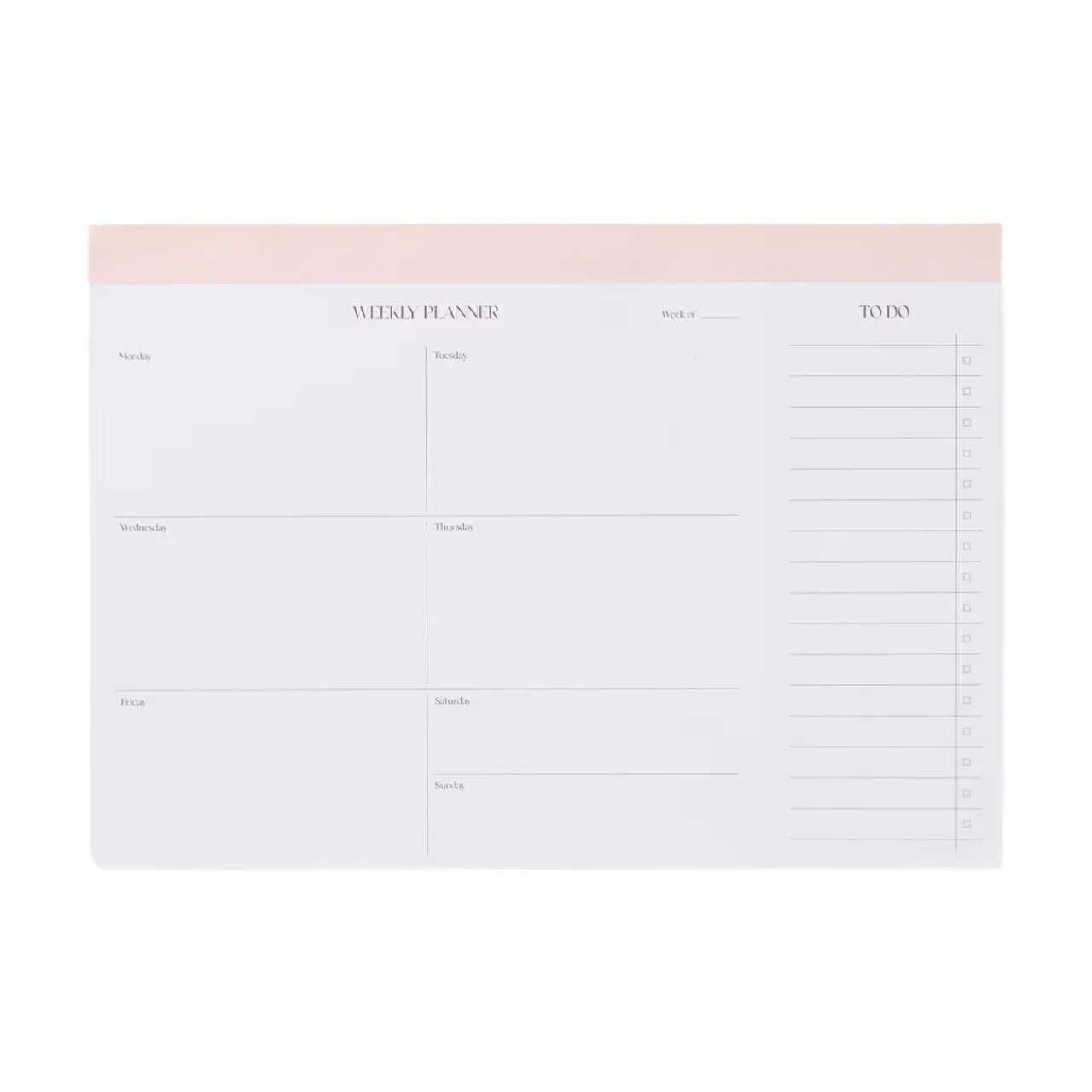 Praktisk veckoplanerare i A4-format med rutor för varje dag och en separat att göra-lista.