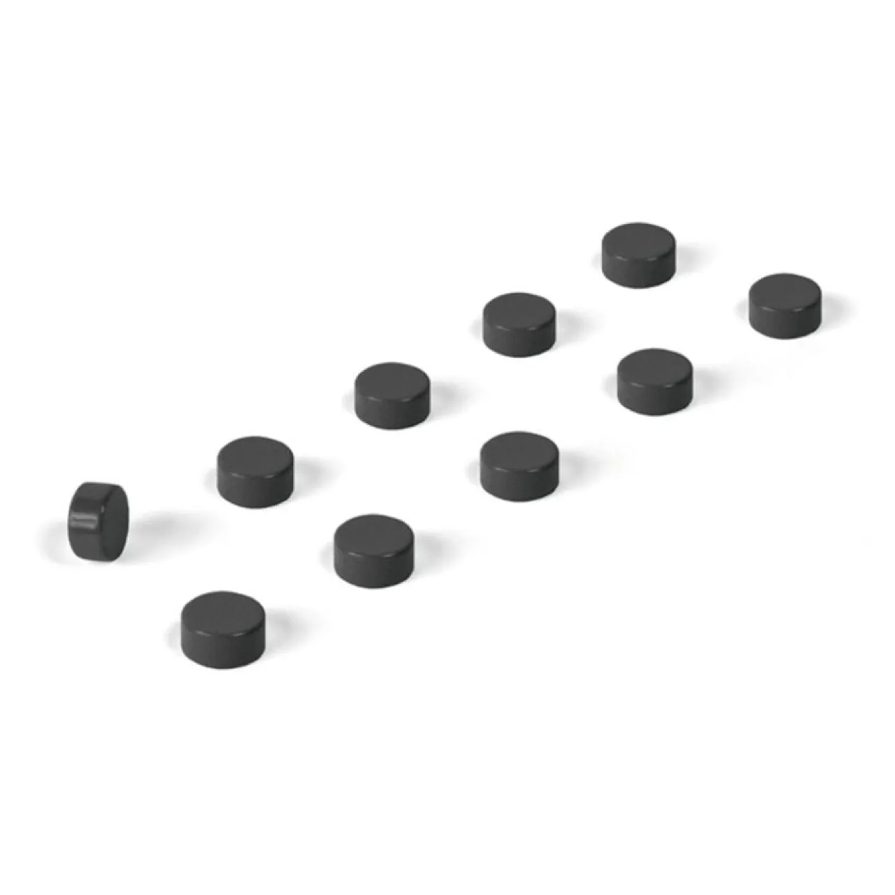 Tio starka minimagneter i svart. Magneterna är extra starka och perfekta för organisation i hemmet! Magneterna är bör hållas utom räckhåll för barn.