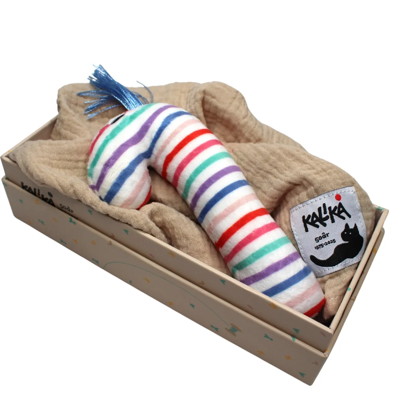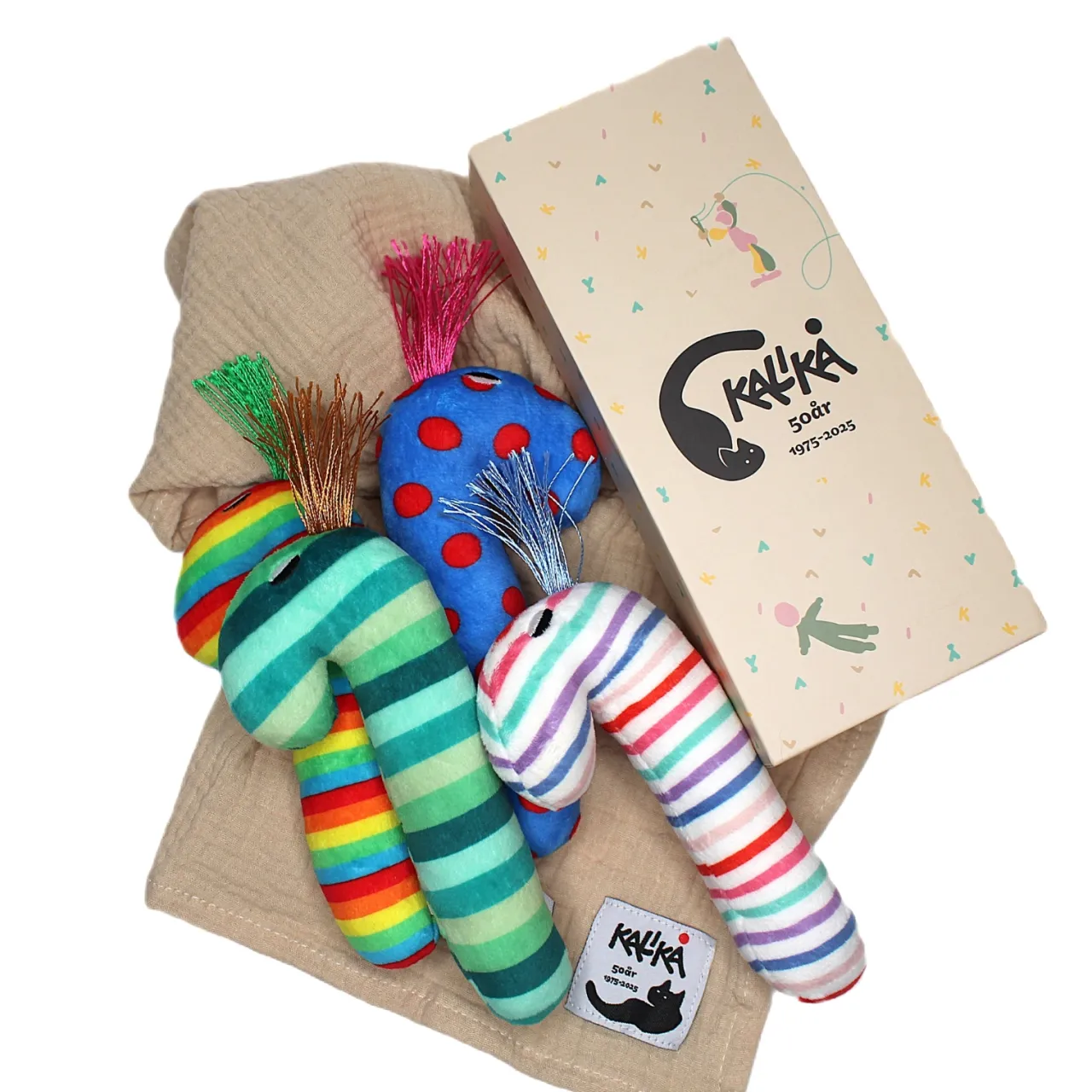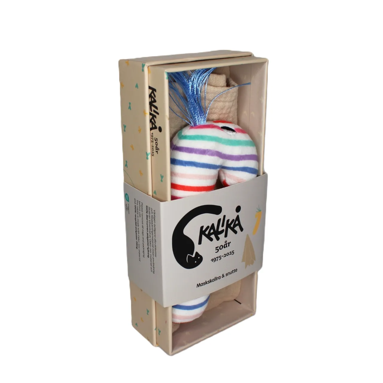 med oss i 50 år! Kalikås klassiska maskskallra i fin presentförpackning med snuttetrasa.