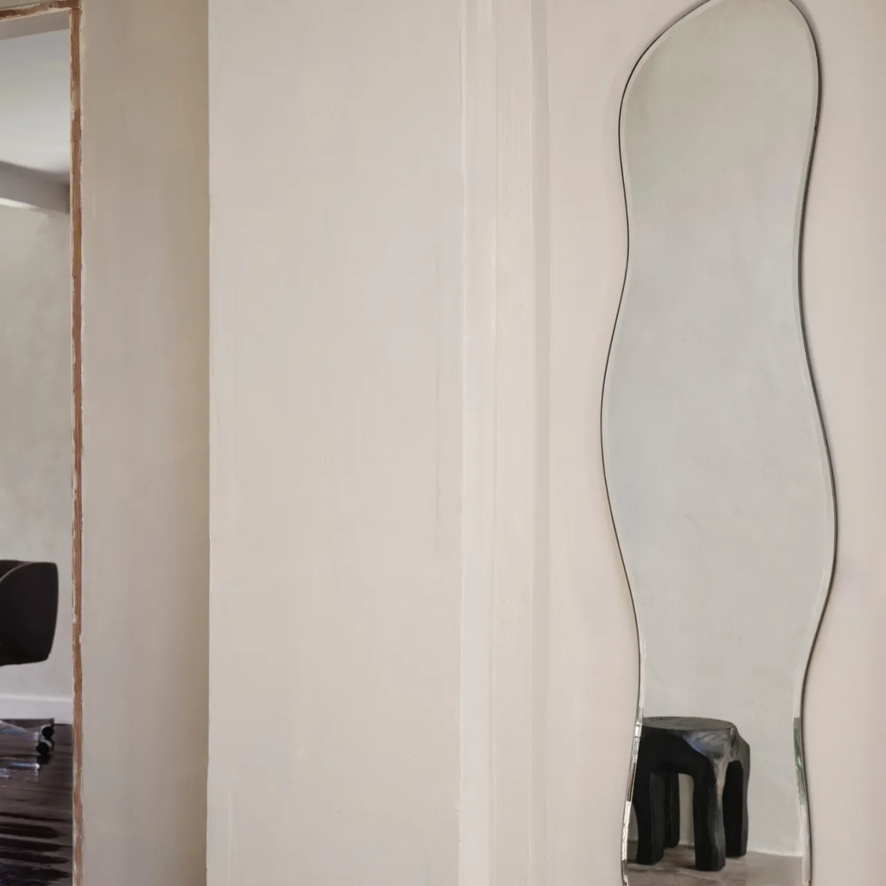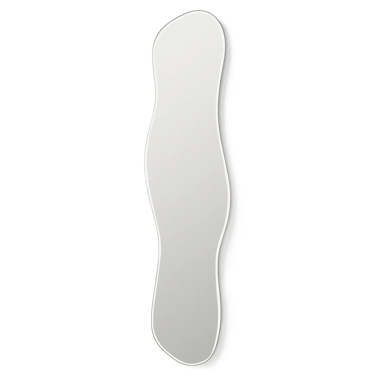 Spegeln Pond från Ferm Living är inspirerad av vattnets fritt flödande rörelser och bjuder in öppna och flytande former i ditt hem. På så sätt förvandlas den funktionella spegeln till ett dekorativt väggföremål. Denna stora spegel i full storlek utökar möjligheterna med Pond Spegels ikoniska silhuett och garanterar en bild av hela kroppen, vilket är perfekt för sovrum, hallar eller andra områden som kräver en fullständig vy.