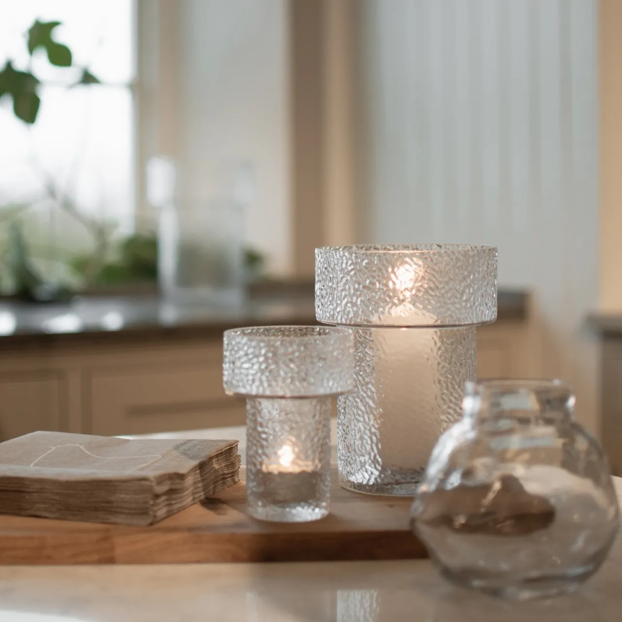 Vas Keeper Struktur i storlek M från DBKD blir genast en användbar och omtyckt del av din inredning. Den är tillverkad i glas och passar alla typer av buketter så att du an fylla ditt hem med både bäldoft och färg! Vasen finns även i fler storlekar och är designad av Halina Fritsch.