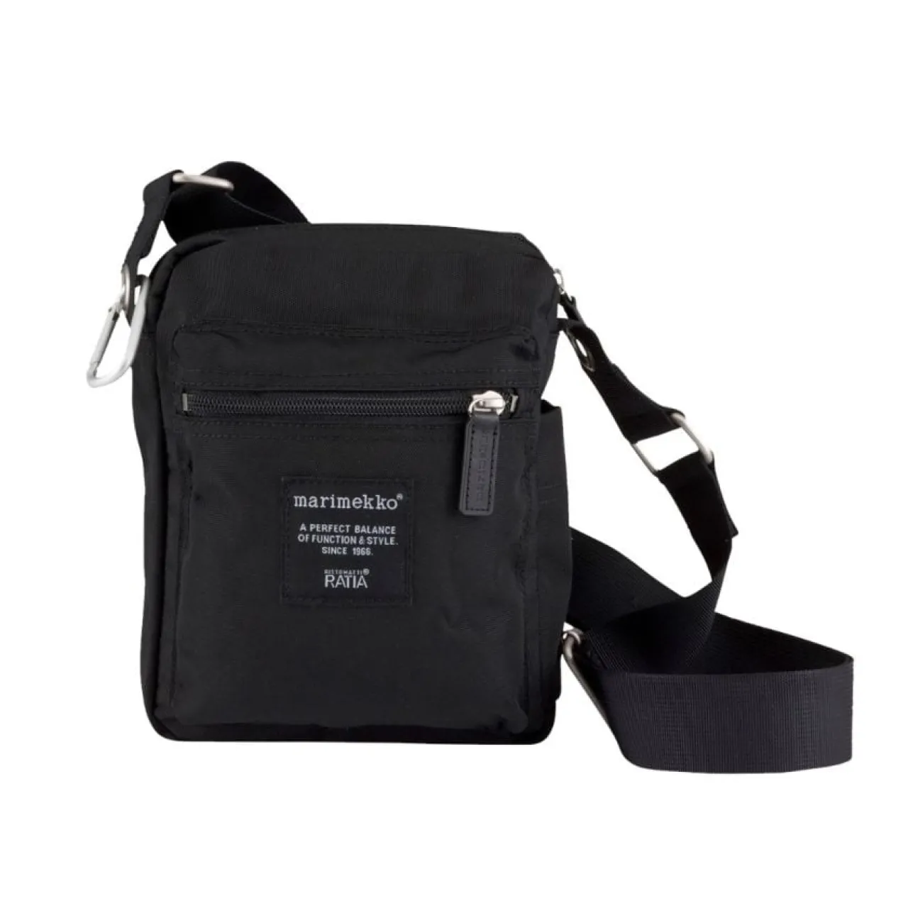 Viktiga saker passar perfekt i den hållbara polyamid Cash & Carry-väskan från Marimekko. Väskan har en justerbar axelrem, förstärkta inre sömmar och en innerficka med blixtlås. Det finns tillräckligt med utrymme för en kamera, din smartphone och plånbok och ännu mer utrymme för mindre föremål i de tre yttre fickorna.