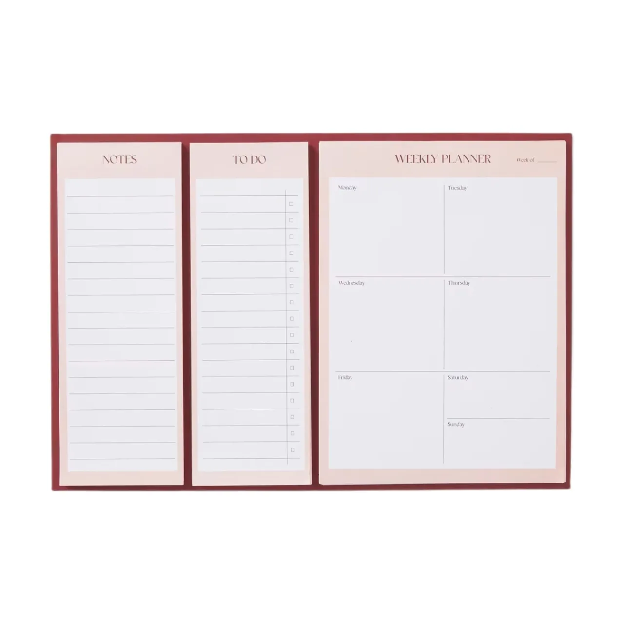Praktiskt set med veckoplanerare, att göra-lista och anteckningsblock, perfekt att ha i hallen eller kontoret.