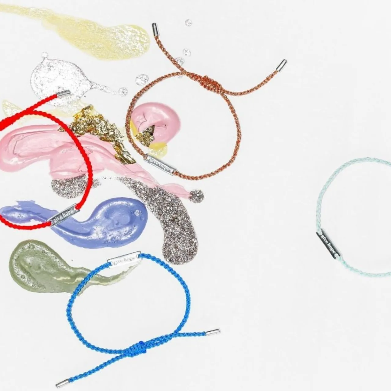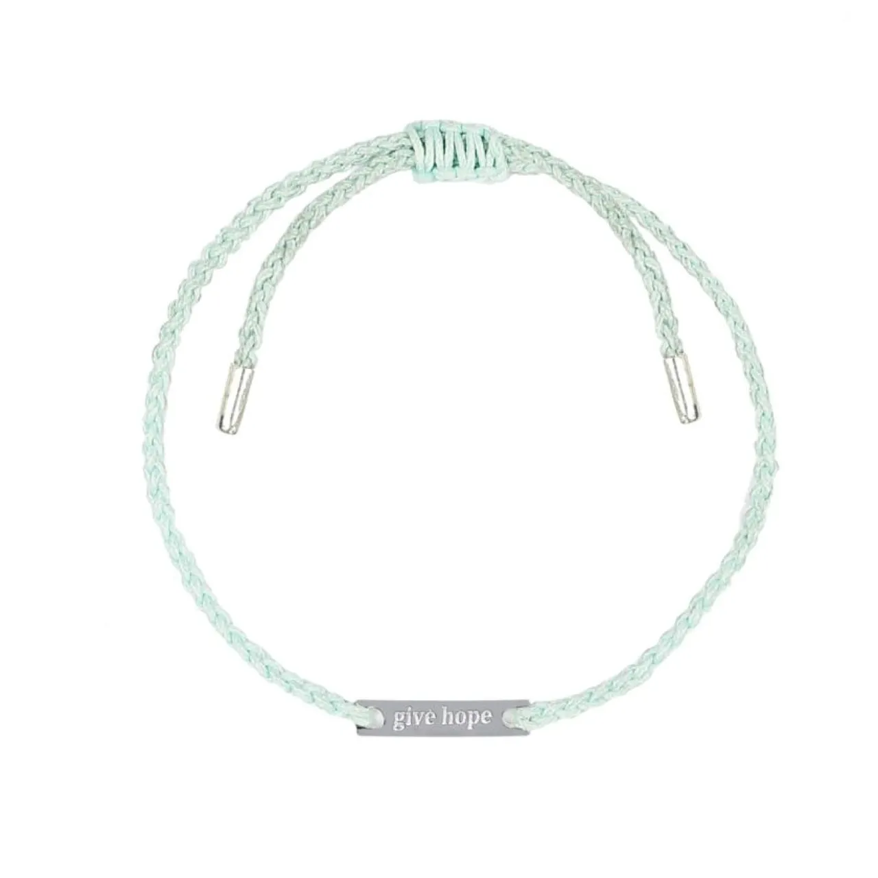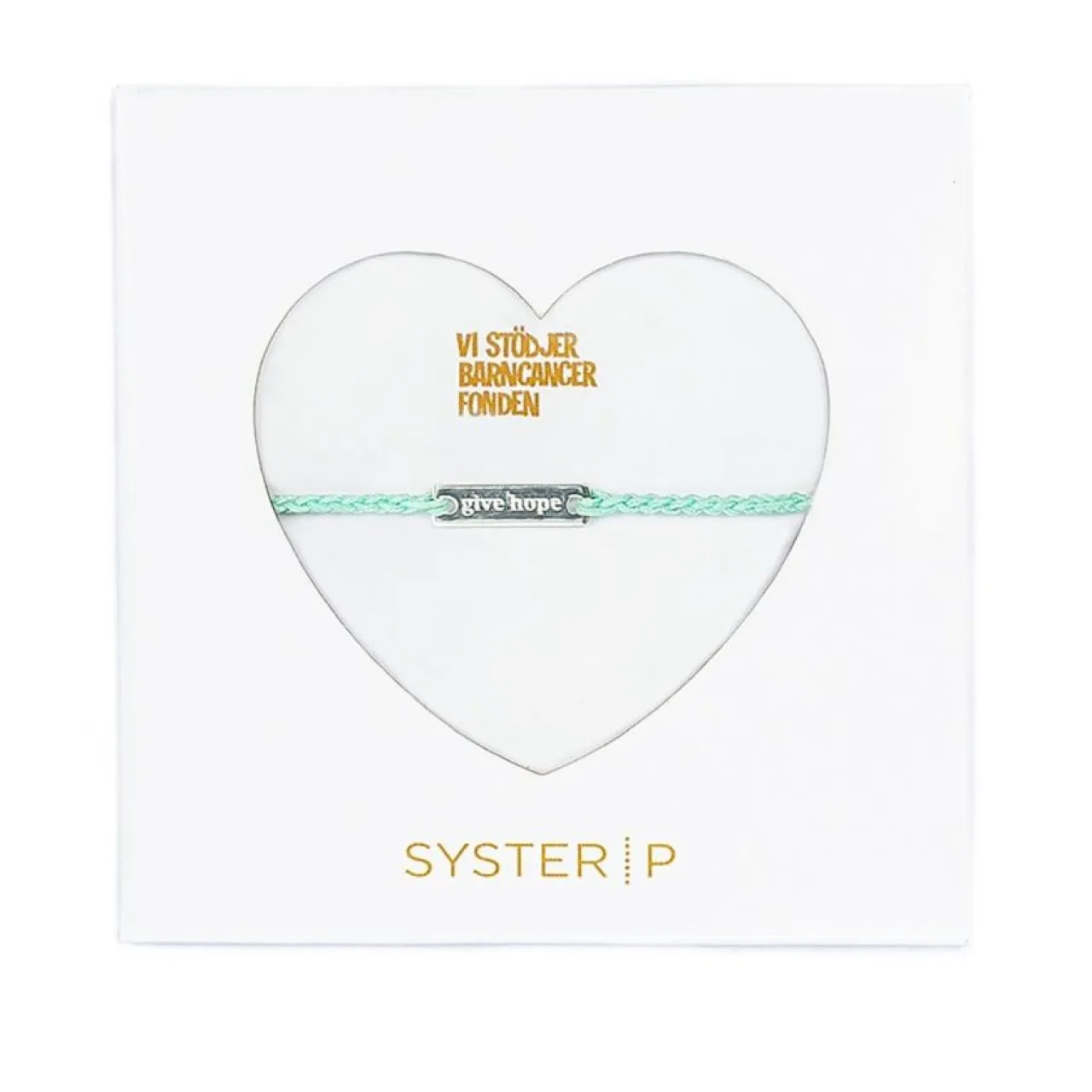 Trådarmband Från Syster P med platta tillverkad av återvunnet sterlingsilver med inskriptionen ”Give Hope”. För varje sålt armband doneras 100kr oavkortat till organisationen Barncancerfonden för att stödja deras viktiga kamp mot barncancer. Armbandet finns tillgängligt i flera färger.