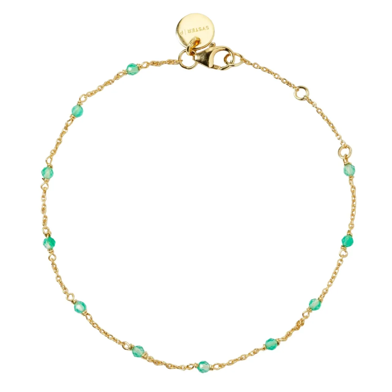 Ett färgglatt armband som lyfter din look! Ett vackert armband dekorerat med gröna onyx-stenar, tillverkat i 100% återvunnet silver, pläterat med 18K guld. Kombinera gärna med matchande halsband för en komplett look. Det perfekta armbandet för den som älskar färg!