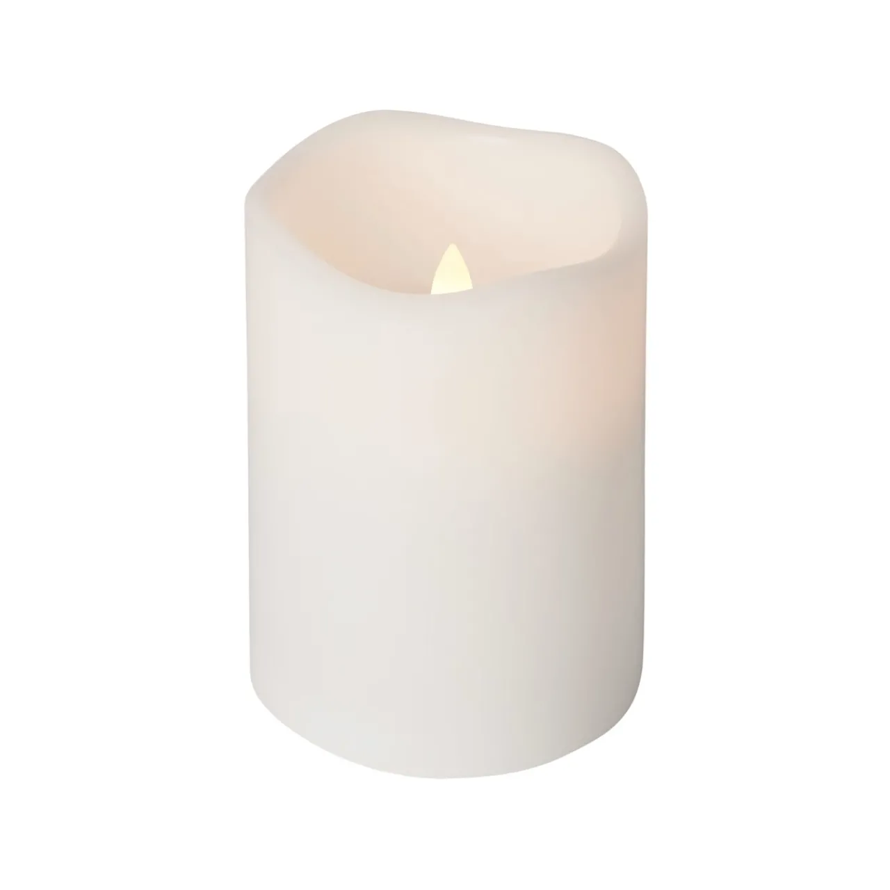 Naturtroget LED-blockljus i paraffinvax med en lätt fladdrande låga av plast.