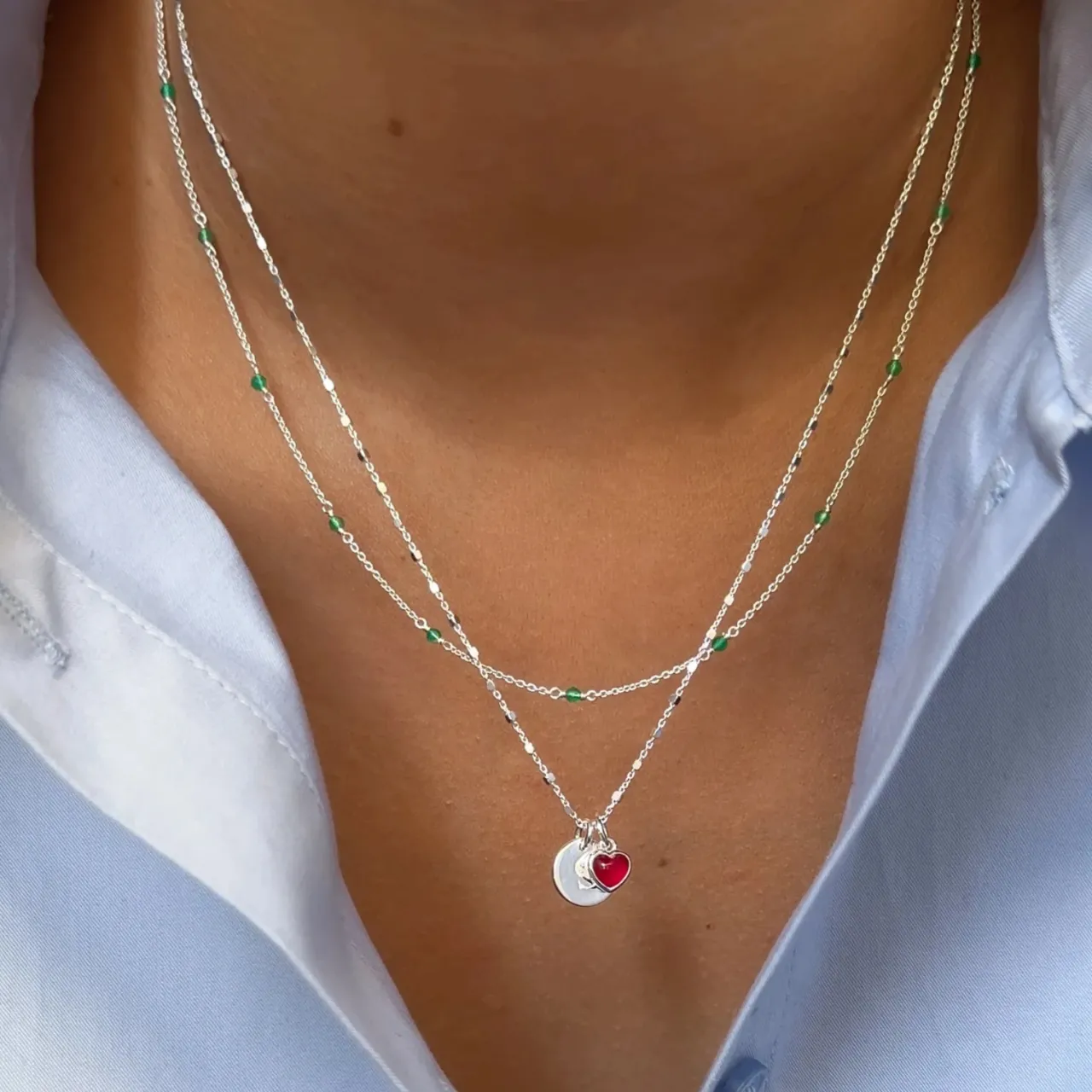 Den perfekta färgklicken för alla tillfällen. Halsbandet fångar uppmärksamheten med sina vackra gröna onyx-stenar och ger varje look det där lilla extra! Tillverkat i 100% återvunnet sterlingsilver. Perfekt att kombinera med ett matchande armband för en komplett look. Garanterat en uppskattad present för den som gillar färg.