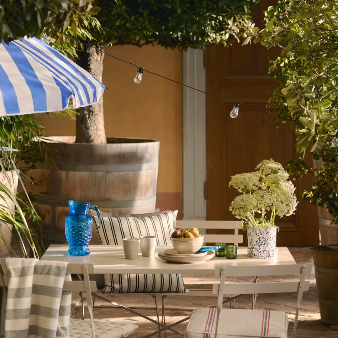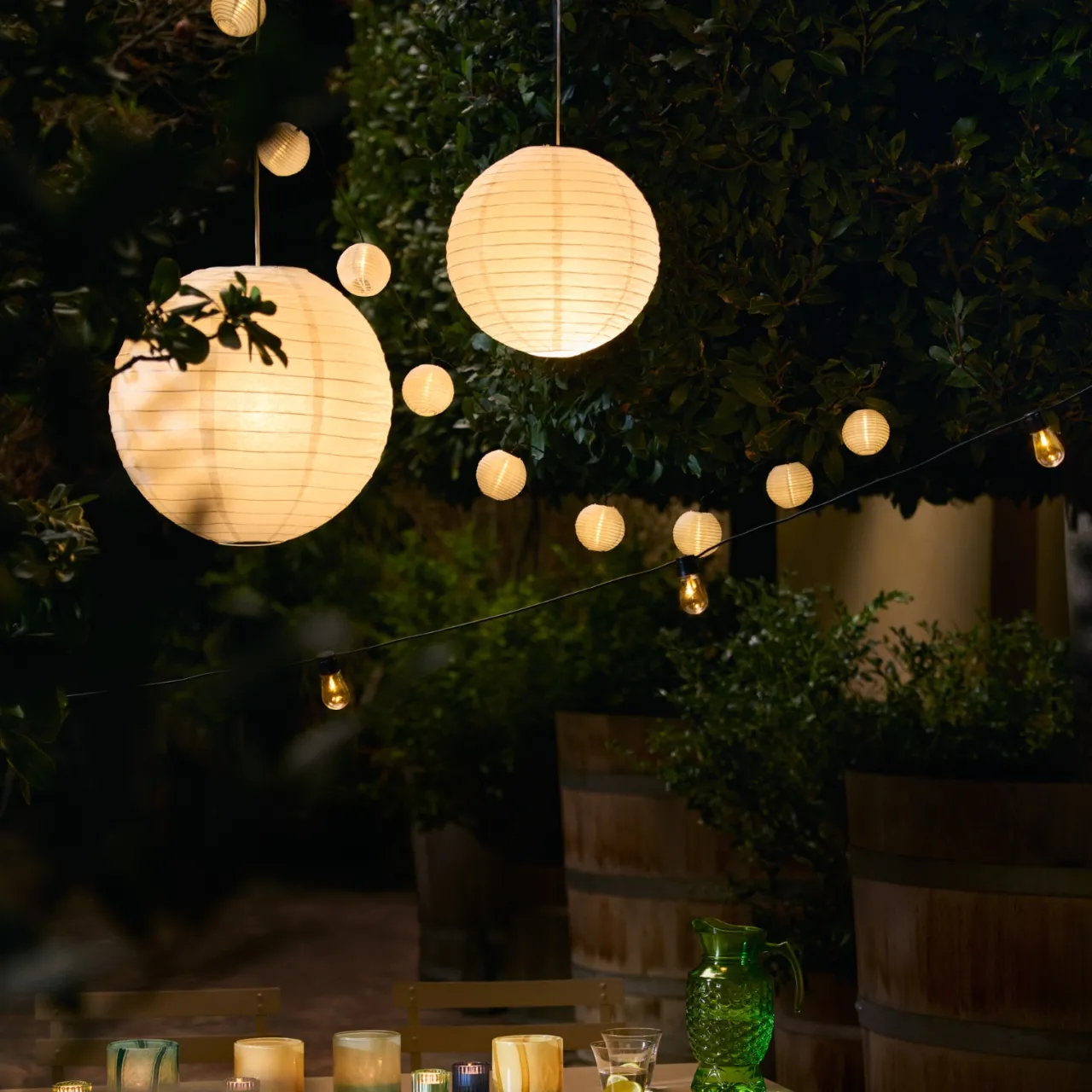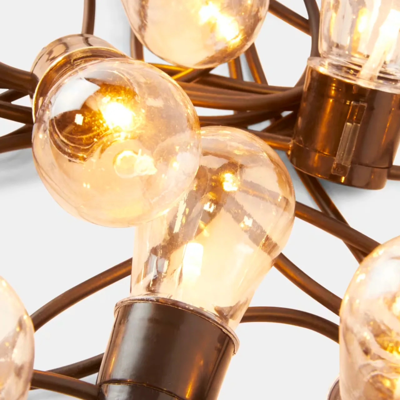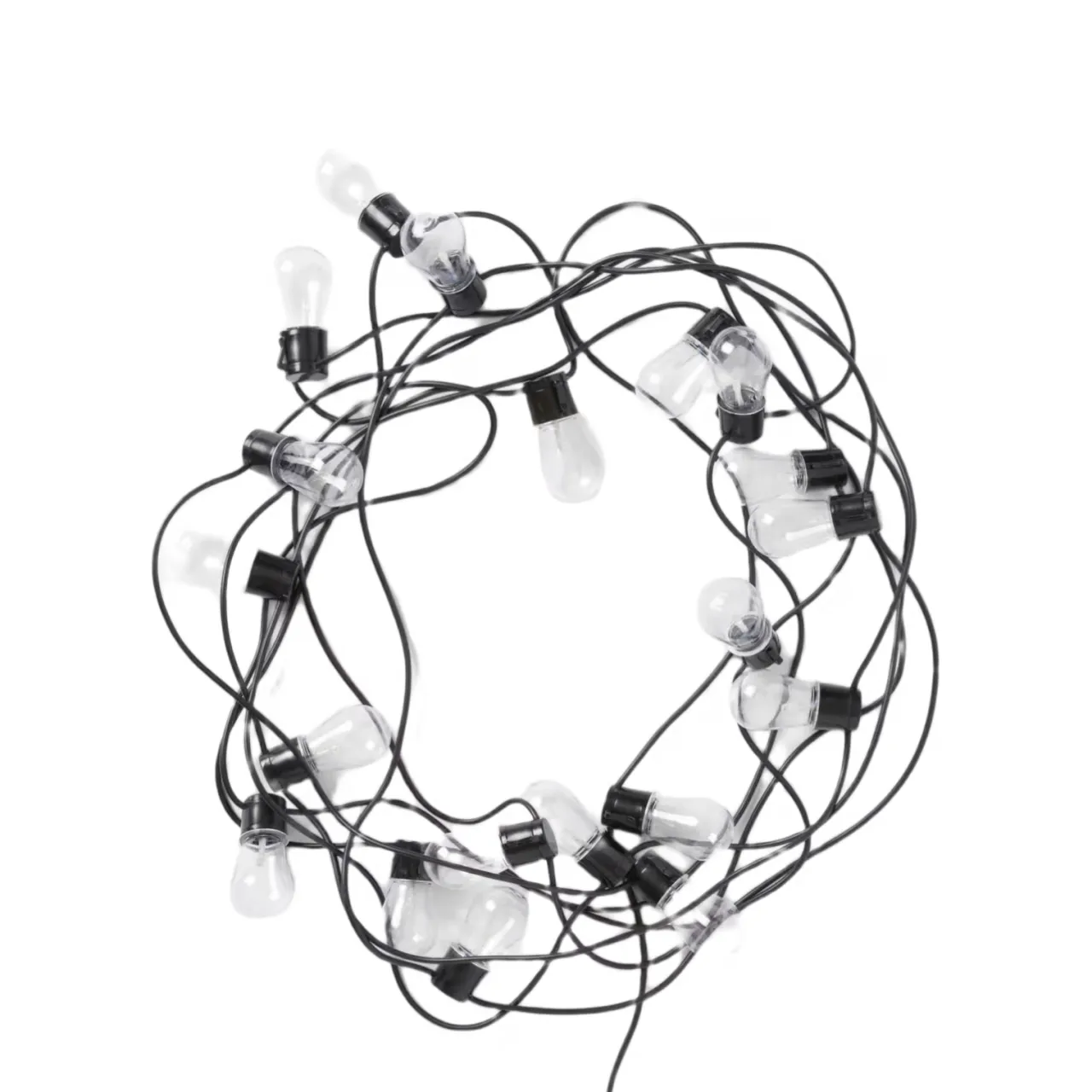 Festlig ljusslinga i gummi med transparenta glödlampor, perfekt till balkongen eller trädgården.