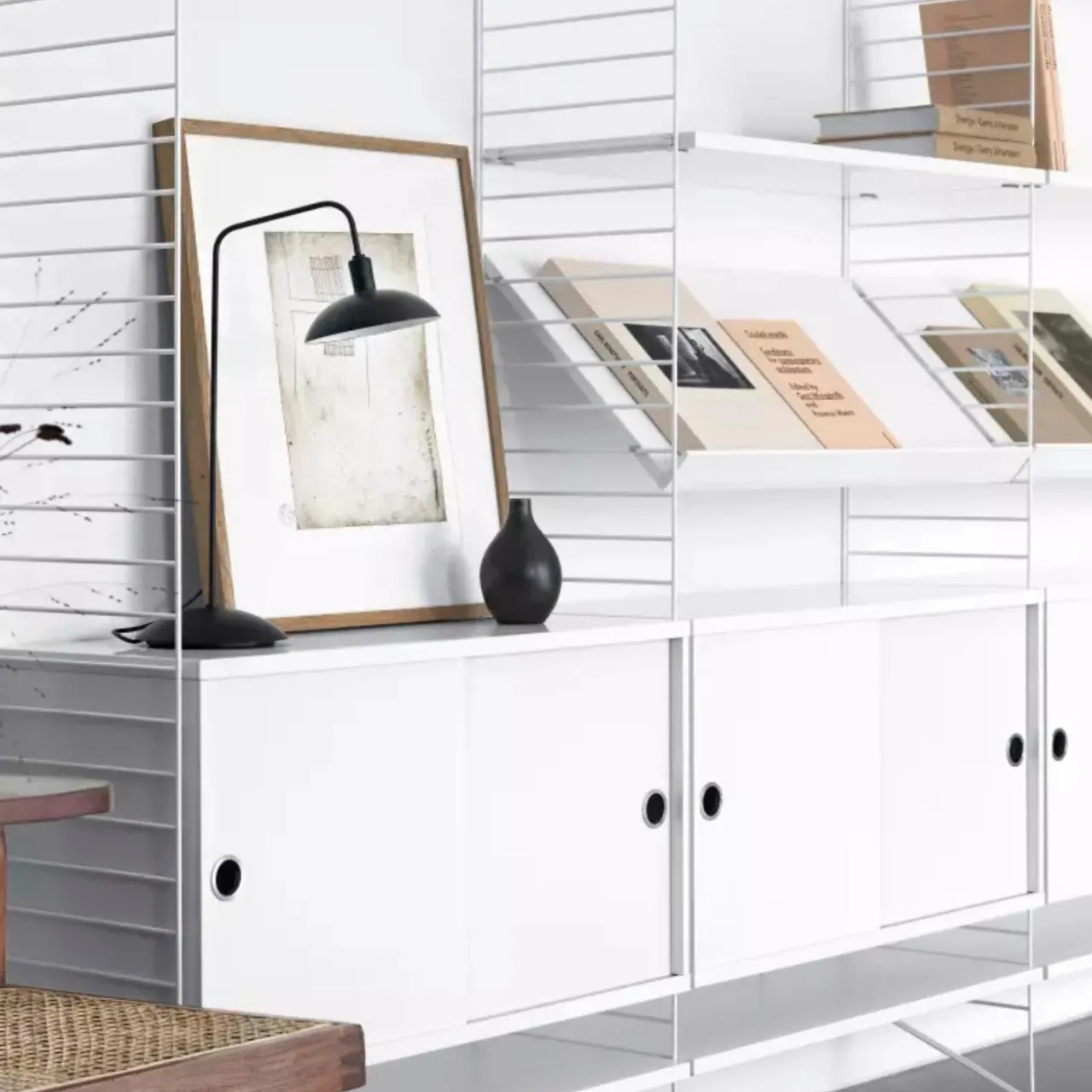 Tidsskriftshyllorna i trä finns i två bredder, 58 cm och 78 cm, och passar med 30 cm djupa trådgavlar från String® System. Tidsskrifthyllorna skapar karaktär och ger dig möjlighet att visa din favoritbok eller bryta av din bokhylla med en plats för tidningar och magasin. Välj bland olika färger och träslag som passar just din stringhylla. Det medföljer upphängningsbeslag i förpackningen
