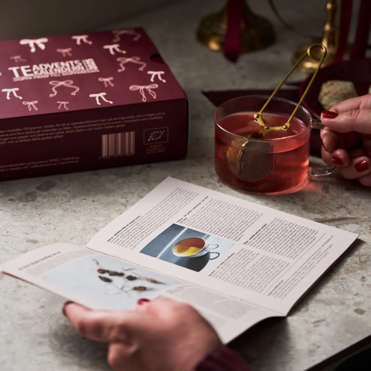 Teadventskalendern 2025 från Nabo! Teadventskalendern innehåller 24 olika sorters te i lösvikt. Nabos tekalender innehåller både svart, grönt och vitt te, samt rooibos och örtteer. Smakmässigt innehåller Teadventskalendern allt från rena teer, till kryddiga, mustiga, blommiga, friska och syrliga. Idéen till adventskalendern med te är en smakrik och lite mer vuxen adventskalender. För visst är det mysigt att även som vuxen räkna ner till julafton? Vi hoppas att tekalendern kan bidra med julkänsla, en smakupplevelse och en lugn och skön stund varje dag i advent.