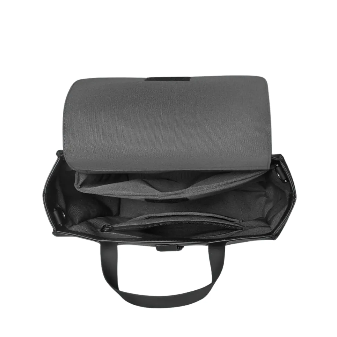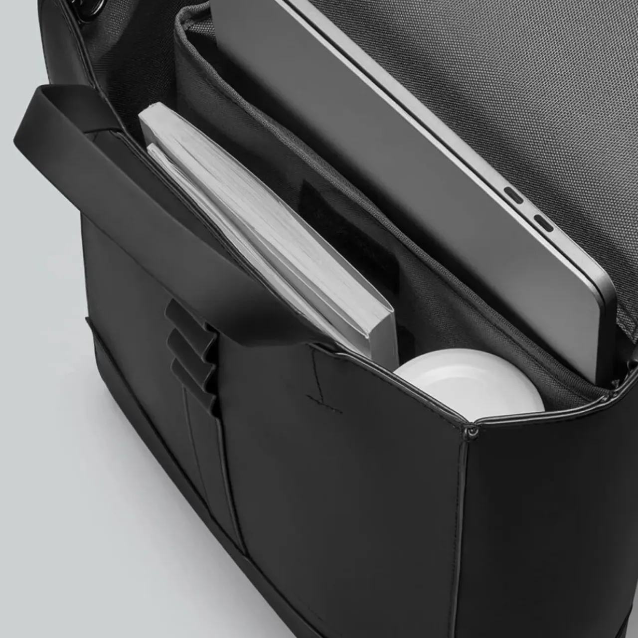 Spläsh-väskan uppdateras denna säsong i en sportig, minimalistisk form. Tillverkad av miljövänligt vattentätt material, den har signaturögladetaljer framtill för hasen tätare, exklusiv hårdvara och en rymlig återvunnen Oxford-fodrad interiör. Den övre fliken kan justeras för att täcka 13” laptop-fodralet, inre fack och fickor. Bär den crossbody, över axeln, eller ta av remmen och använd den som en handväska.